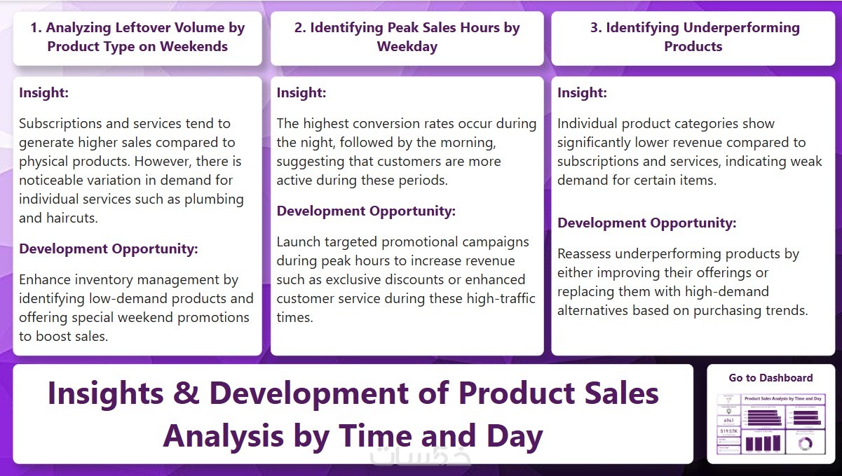 من خلال الخدمة، يمكنك الحصول على تحليل دقيق للبيانات وتصميم لوحات معلومات تفاعلية باستخدام Power BI، تساعدك في تحويل بياناتك إلى رؤى واضحة. يتم تصميم لوحات وتقارير مخصصة تلبي احتياجات عملك، مما يسهل عليك متابعة الأداء واتخاذ قرارات استراتيجية بشكل أسرع وأكثر فعالية.