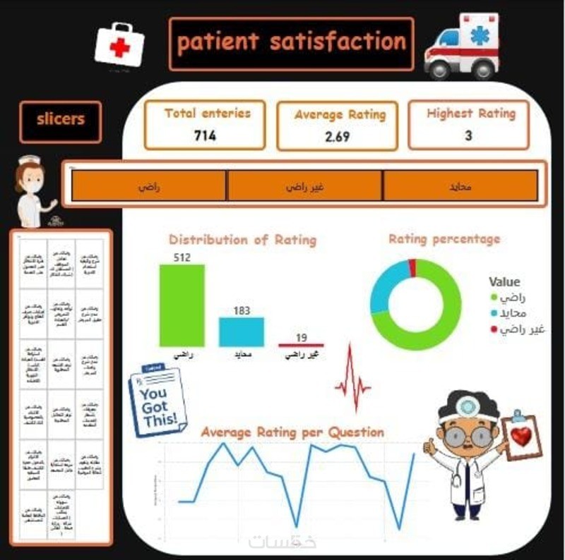 تحليل البيانات الطبية (رضا المرضى – تقييم الأداء – أوقات الانتظار...)