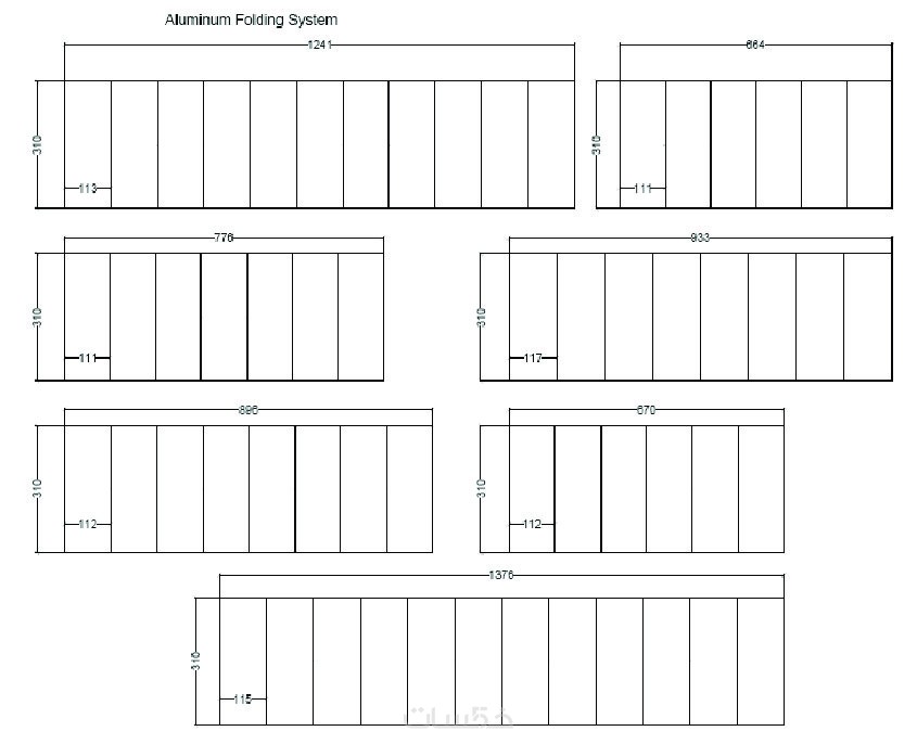 يشمل الألمنيوم، الزجاج، التصنيع، الإكسسوارات، والمساحة لكل قطعة.
