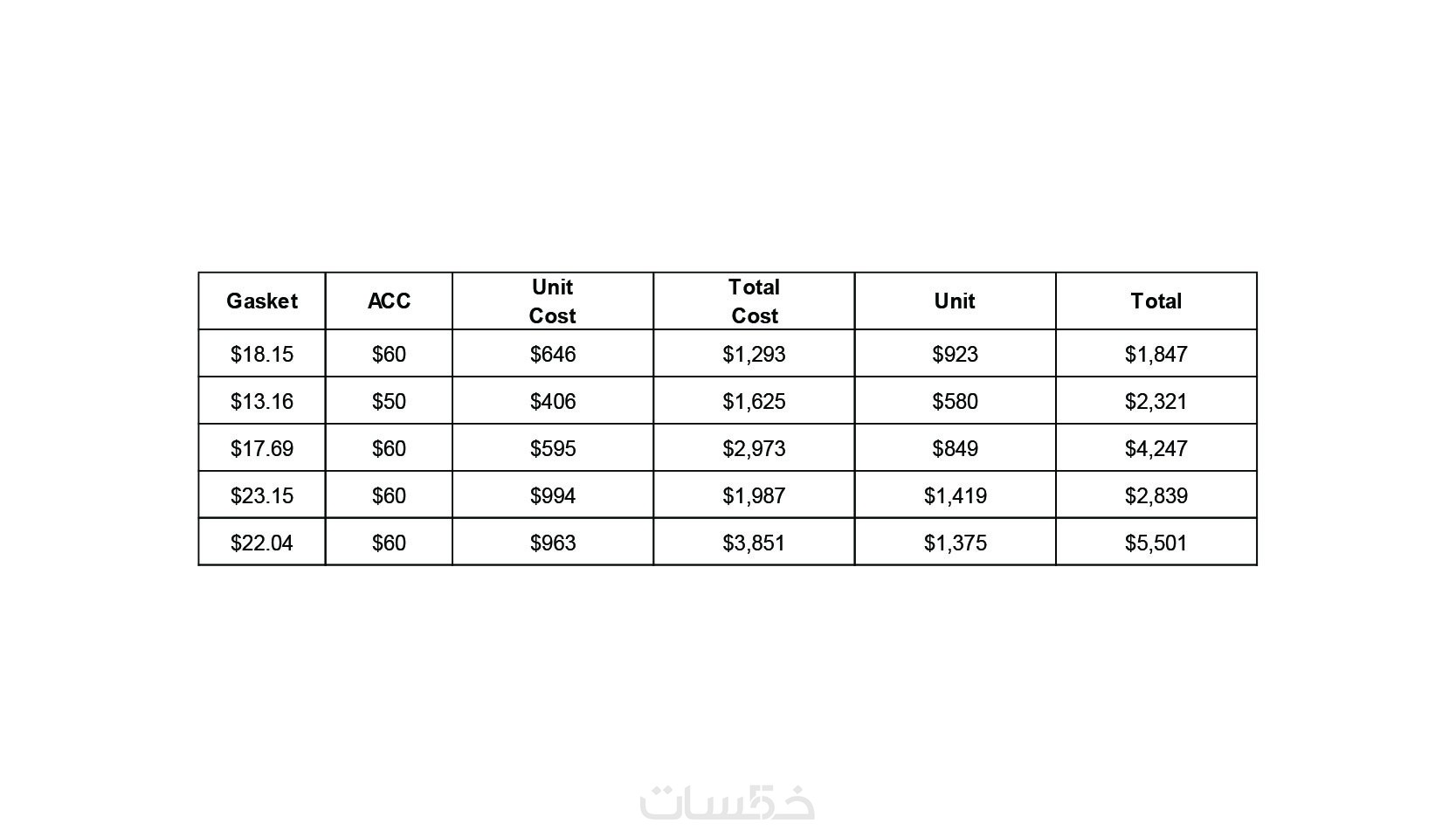 تسعير شامل لجميع المكونات