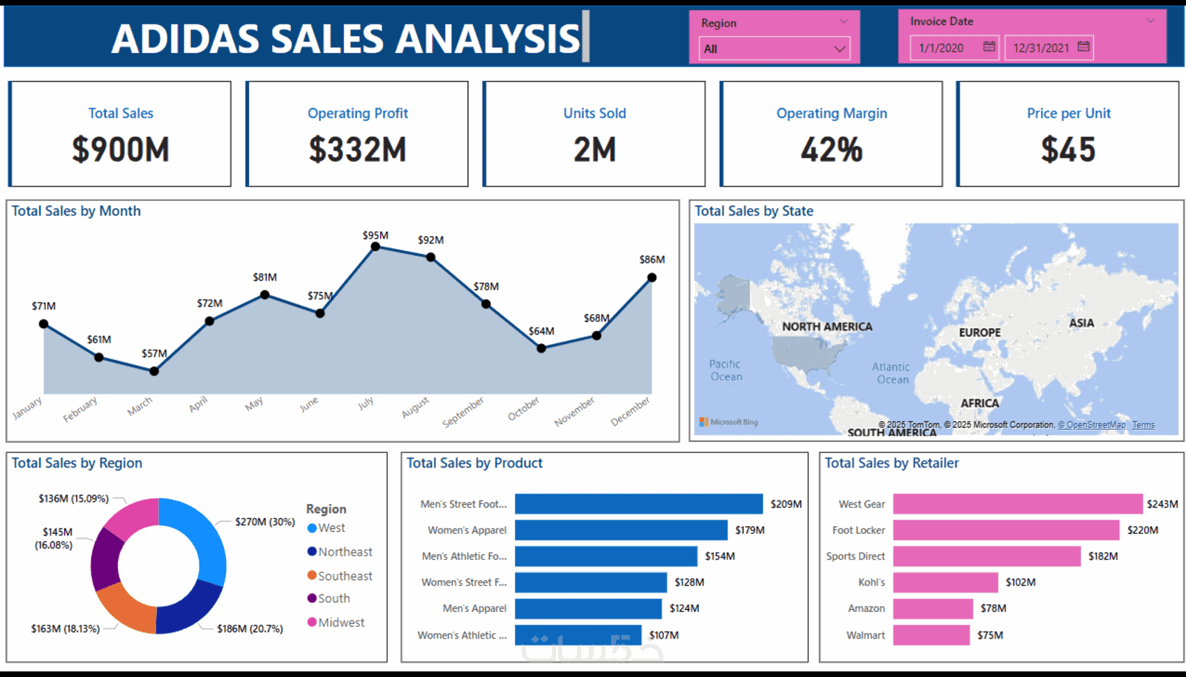 لوحة Power BI تفاعلية: تعرض البيانات بشكل مرئي مع مؤشرات الأداء الرئيسية.