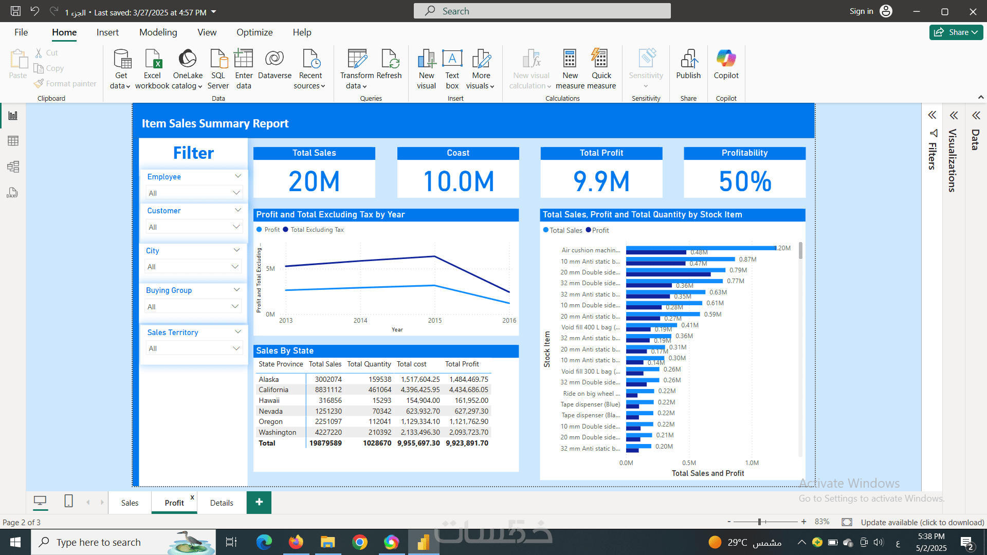 سأقوم بتصميم وتطوير داشبورد تفاعلي واحد باستخدام برنامج Power BI يعرض أهم المؤشرات والبيانات التي تحتاجها في صفحة واحدة. سأقوم بربط الداشبورد بمصدر بيانات واحد (مثل ملف Excel، CSV، أو قاعدة بيانات بسيطة تحددها). سيتضمن الداشبورد ما يصل إلى خمسة عناصر بصرية (رسوم بيانية، جداول، مؤشرات أداء رئيسية) تعرض البيانات بطريقة واضحة وسهلة الفهم. تشمل خدمتي الأساسية ربط البيانات، إنشاء العناصر البصرية المطلوبة، وتنسيق الداشبورد بشكل احترافي