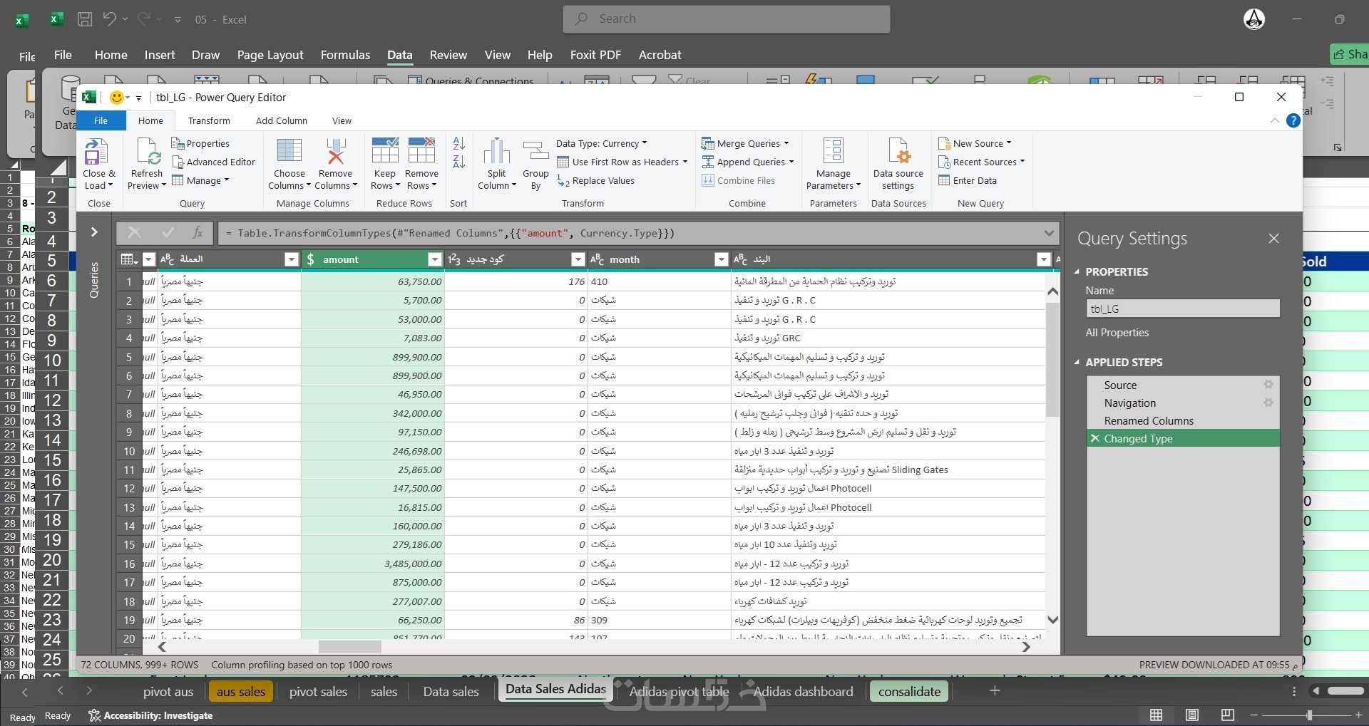 عدد البيانات حتى مليون صف من جدول واحد