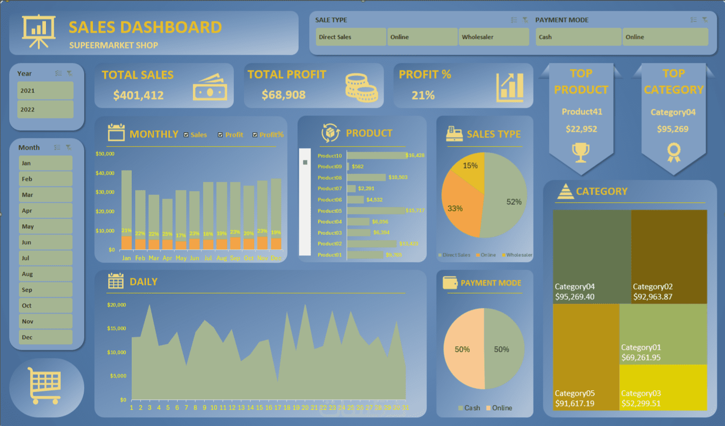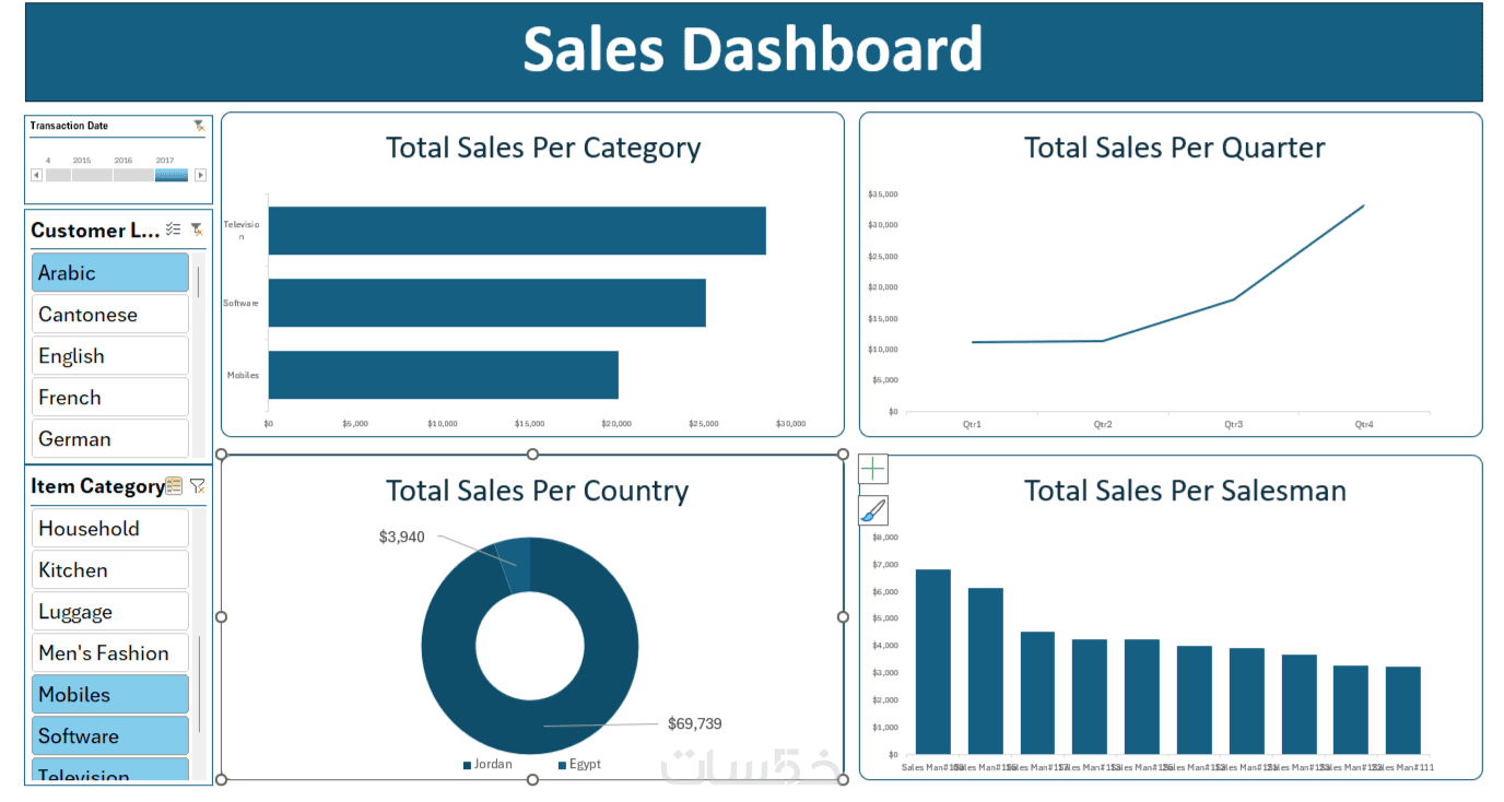 سأقوم بإنشاء لوحة تحكم مُصممة خصيصاً لاحتياجاتك باستخدام Power BI أو Tableau. ستمكّنك هذه اللوحة من متابعة مؤشرات الأداء الرئيسية (KPIs) بسهولة.