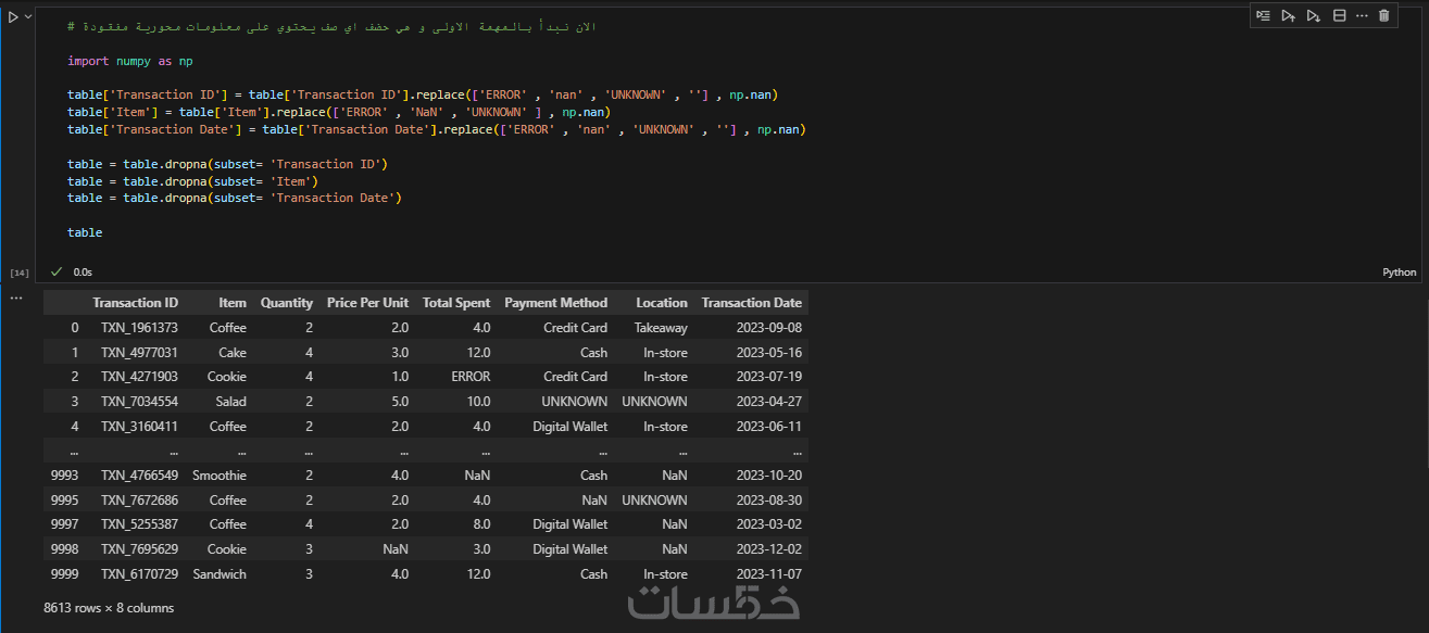 إزالة القيم المفقودة والمكررة