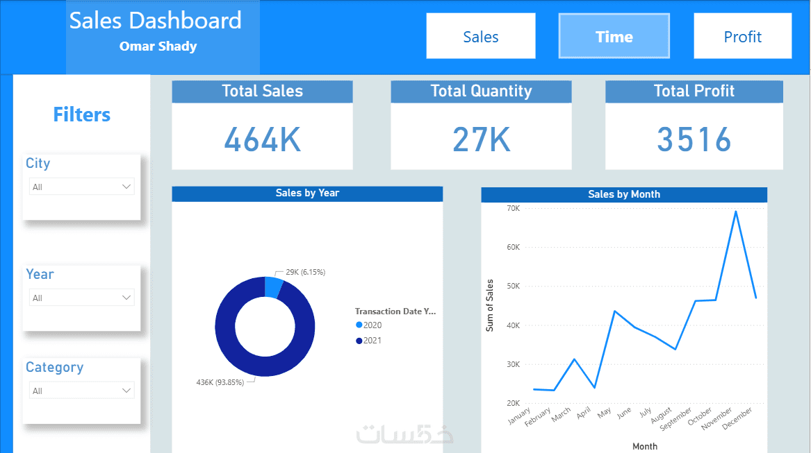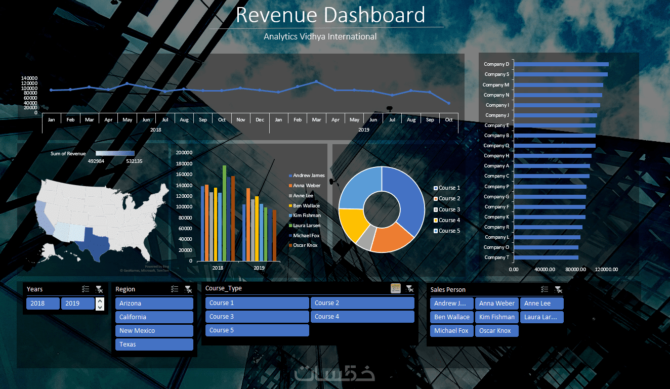 لوحة تحكم احترافية تفاعلية باستخدام Power BI أو Excel.
