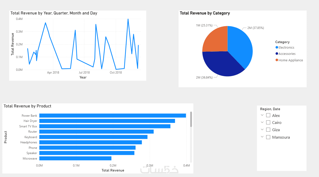 حتى 5 Charts/Visuals توضح أهم الجوانب في بياناتك (مثل المبيعات أو العملاء أو الأداء المالي).