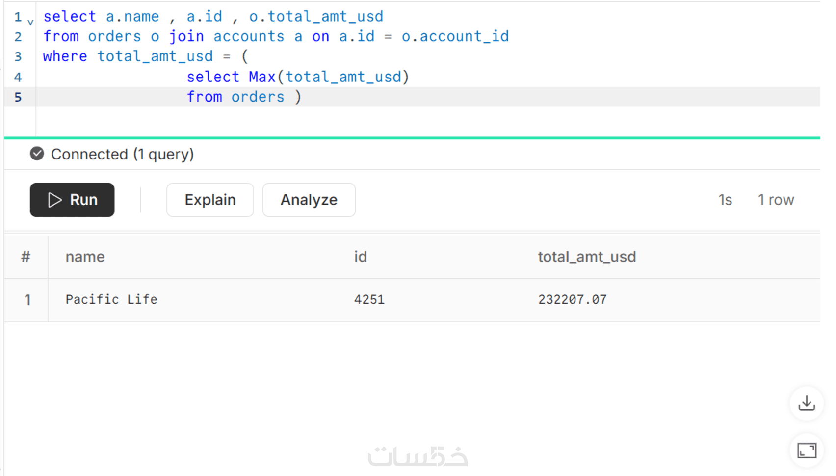 5- الرد على أسئلة محددة من البيانات (مثال: أكثر المنتجات مبيعًا، متوسط الرواتب، …).