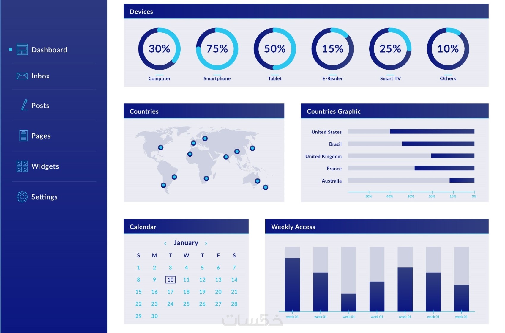 ستحصل علي أربعة dashboard
