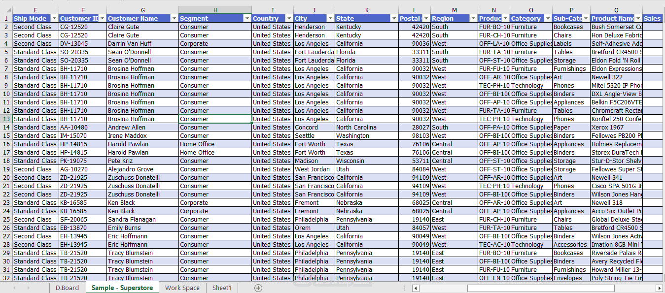 تنظيم وتنظيف بياناتك في جداول Excel.