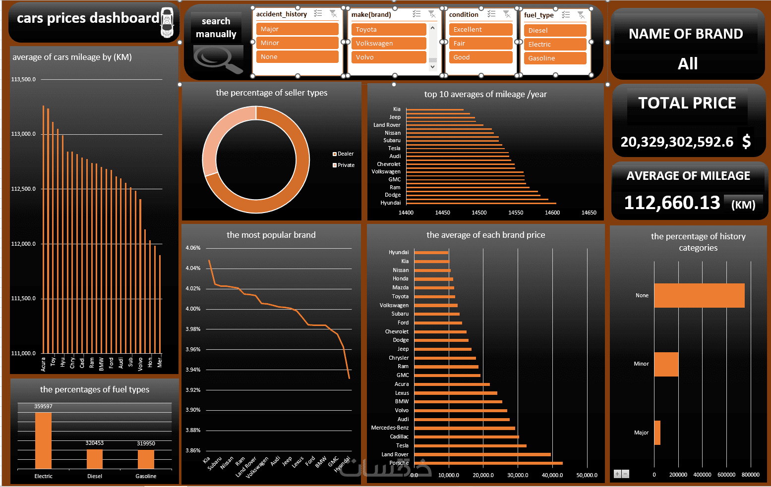 اقدم لك الخدمة فى ملف اكسل عبارة عن البيانات فى شكل جداول منظفة وشيت اخر به الداش بورد