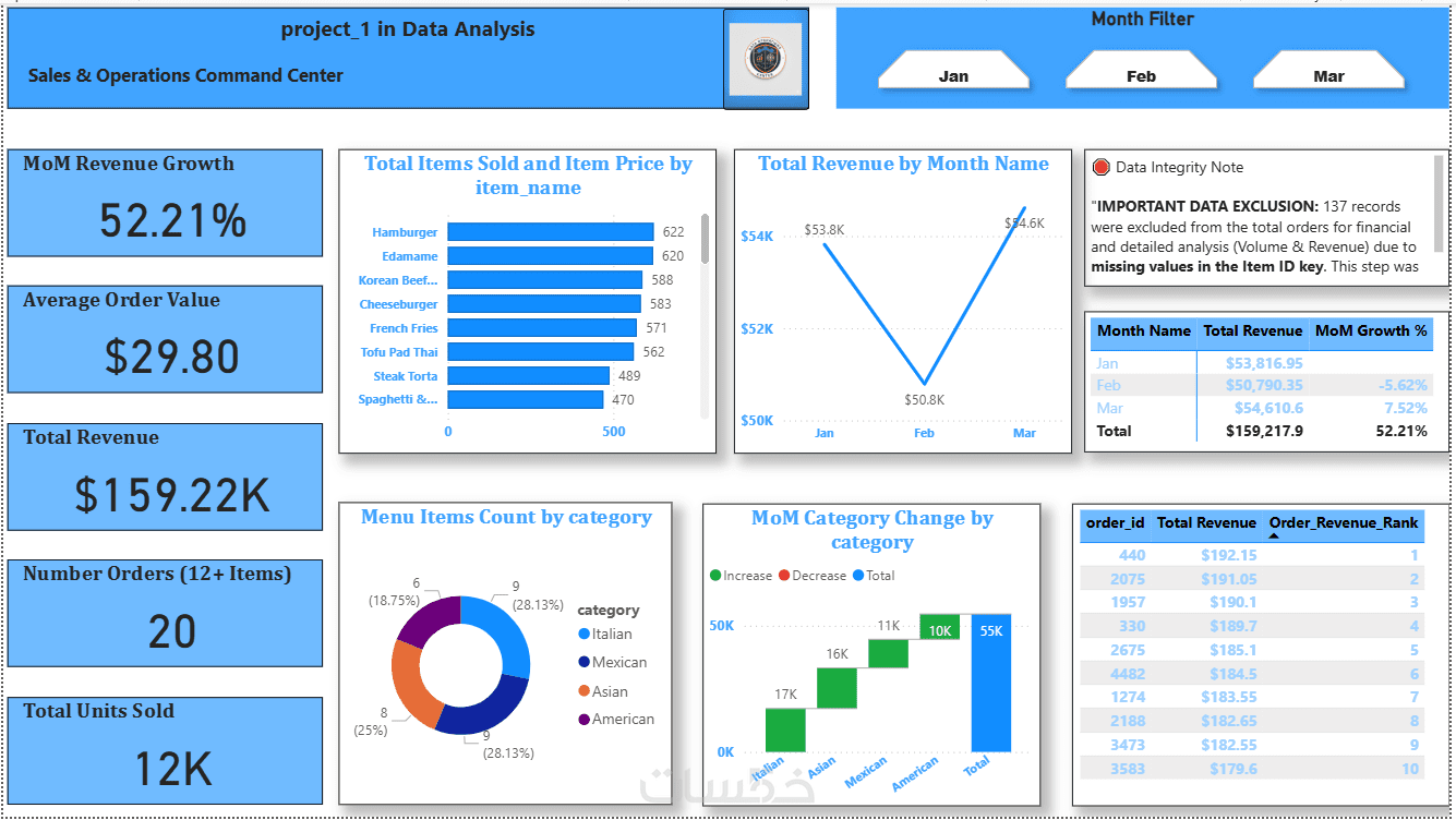 سأحول ملفاتك (Excel / CSV / SQL) إلى لوحة تحكم احترافية باستخدام Power BI، تمنحك رؤية واضحة لأداء عملك في مكان واحد وبشكل تفاعلي وسهل الفهم.