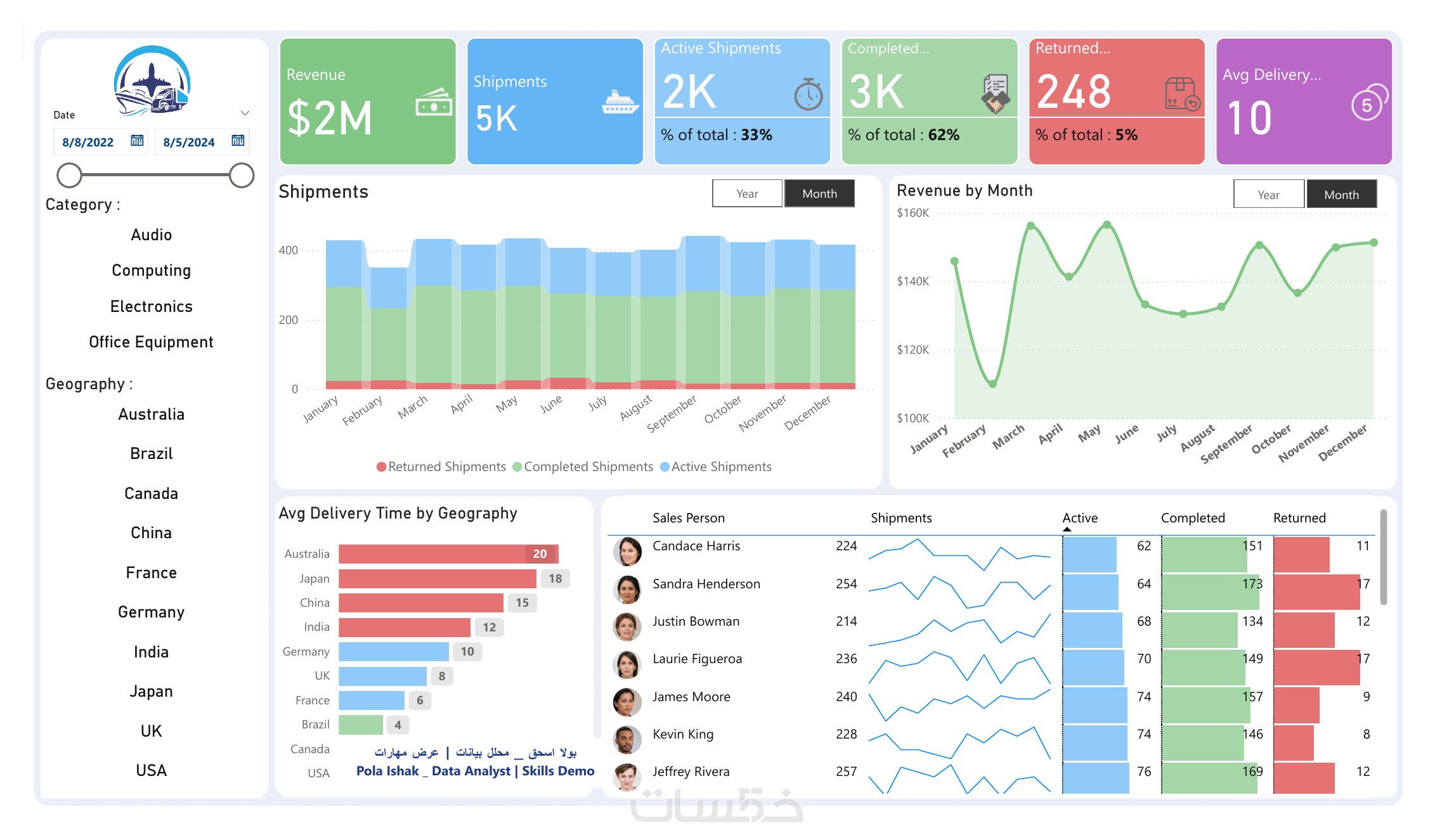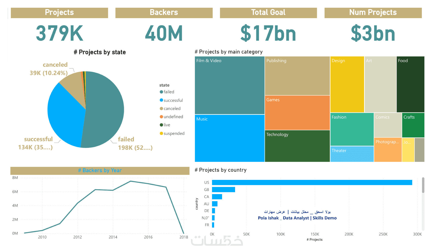 تصميم Interactive Dashboards توضح مؤشرات الأداء (KPIs) من خلال Charts, Graphs, Maps وغيرها.