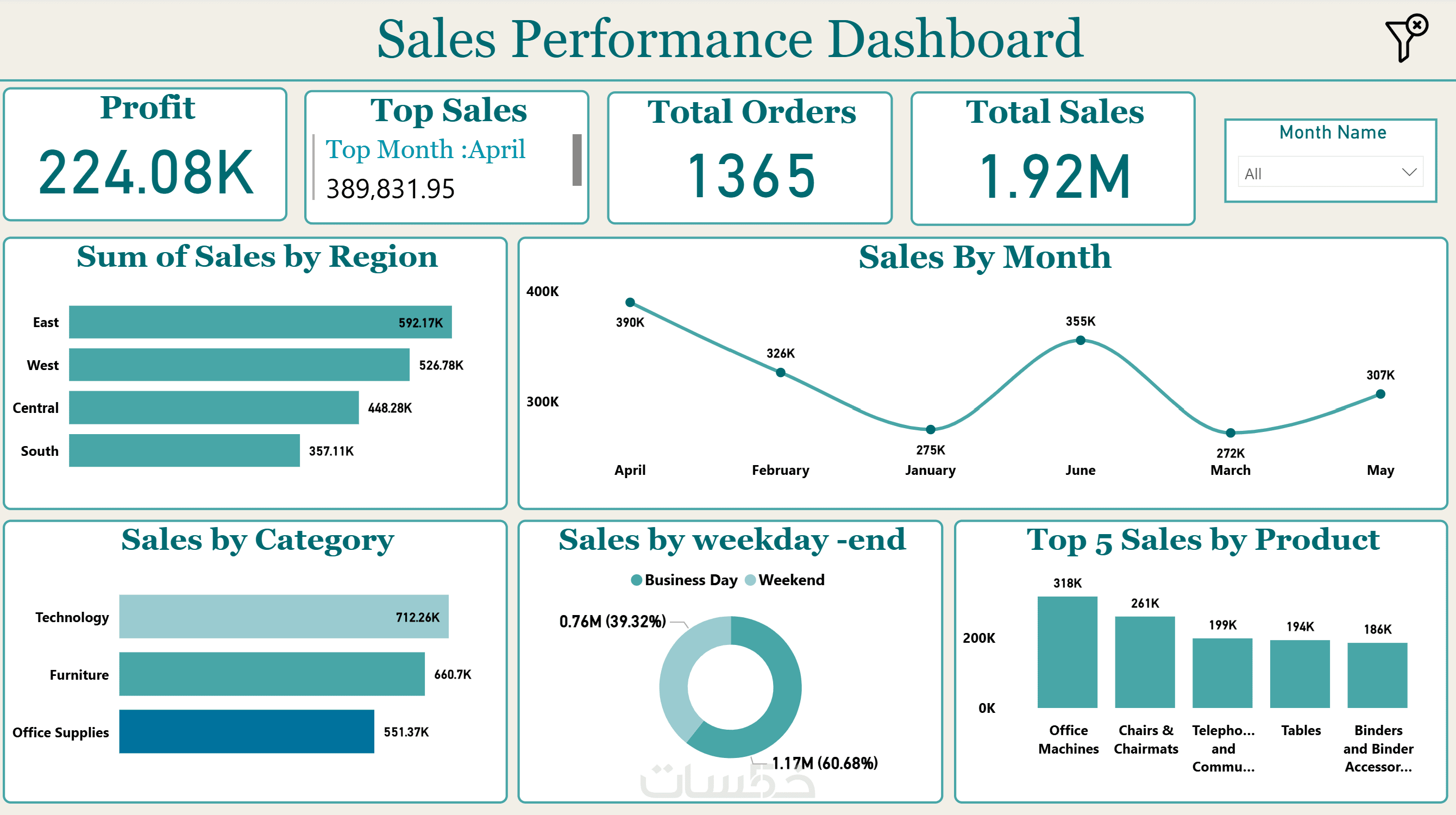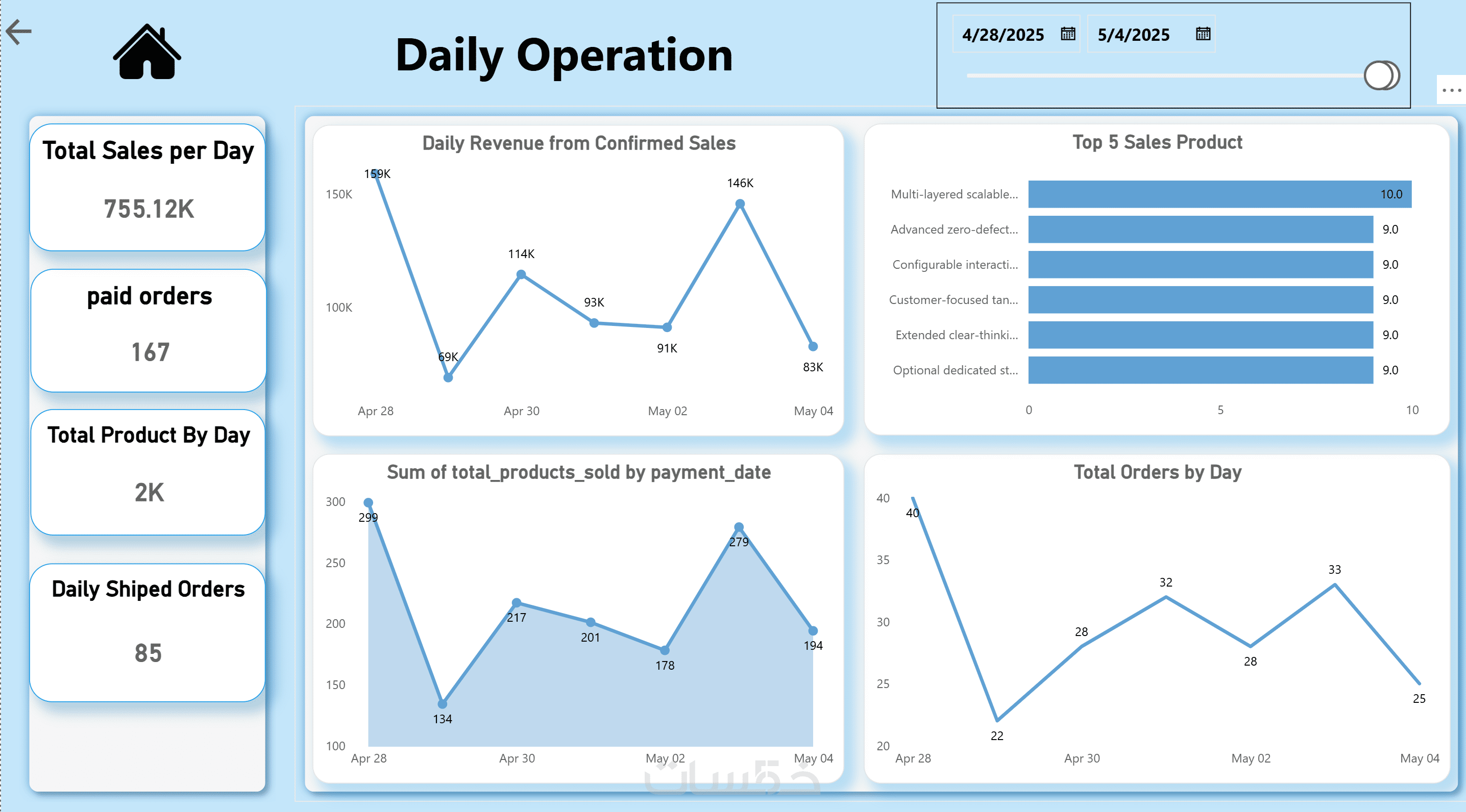 تصميم لوحة تحكم : تصميم صفحة واحدة من لوحة التحكم تتضمن 5 رسومات بيانية/تفاعلية رئيسية (Visualizations) مختارة بعناية لعرض أهم مؤشرات الأداء الخاصة بك.