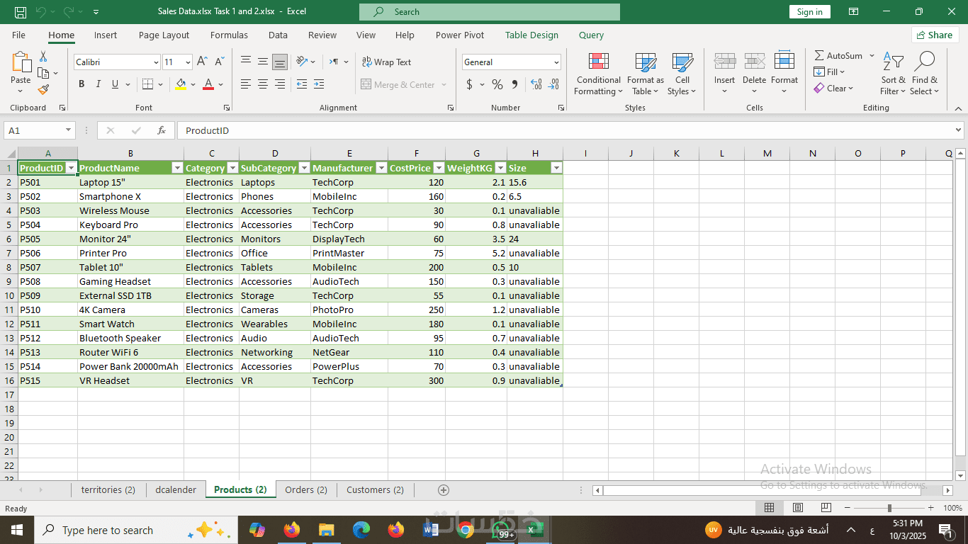 بيانات مبيعات لـ 90 يوماً (ربع سنوي).