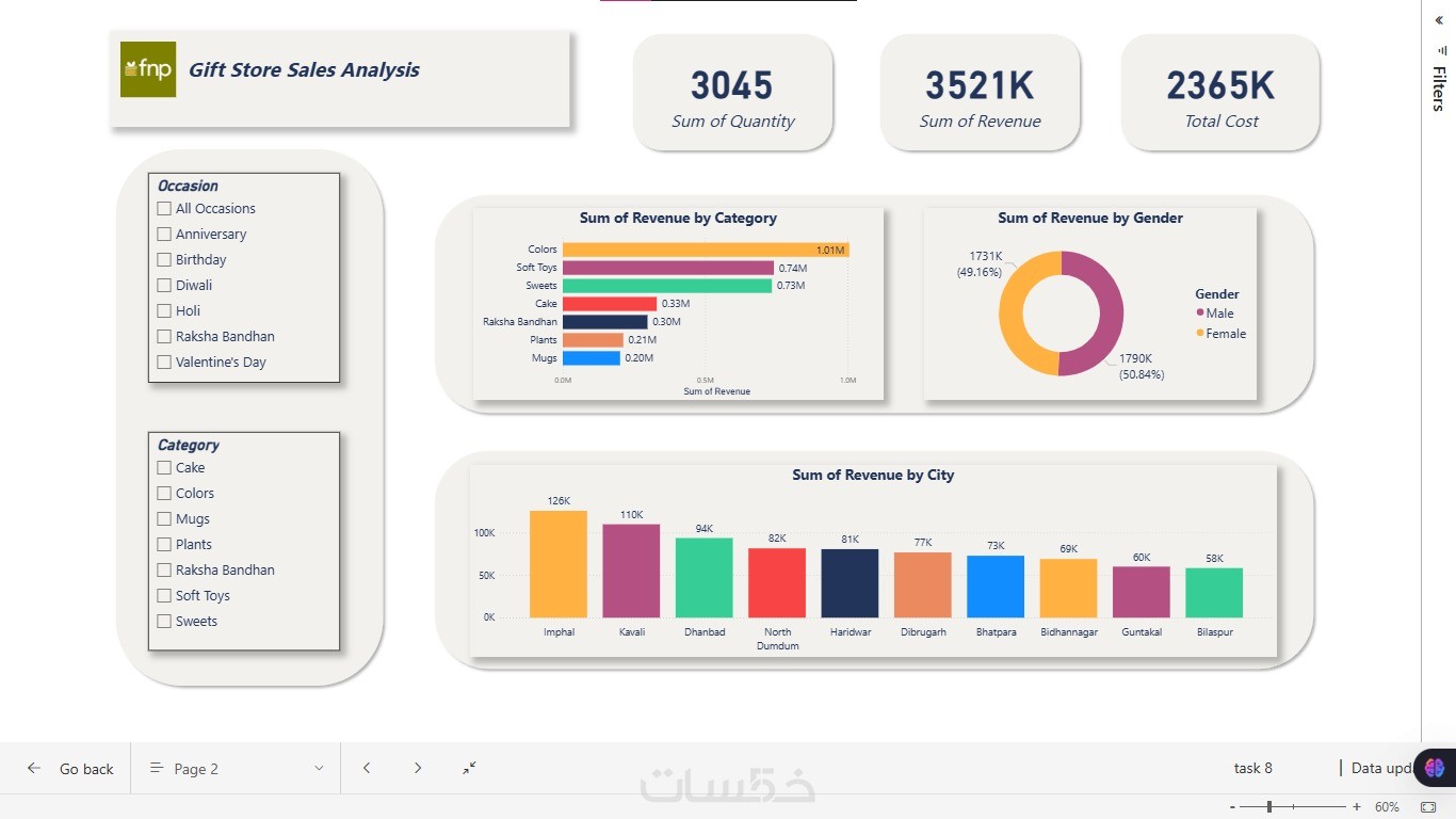 - انشاء شيت اكسل مكون من صفحة واحدة بها 4 رسوم سواء بيانية او cards تحتوي علي قيم حسب الطلب