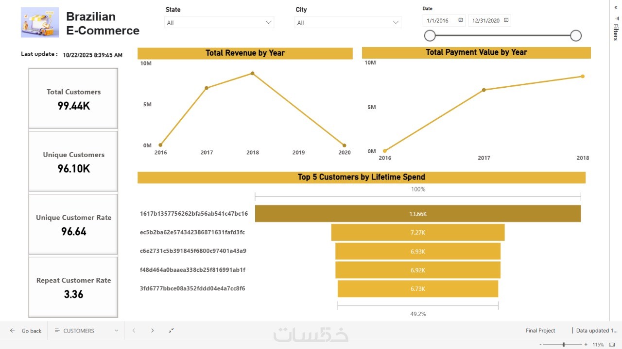 واجهة بصرية احترافية وجاهزة للاستخدام تُلخص أهم مؤشرات الأداء الرئيسية (KPIs)، سواء تم إنشاؤها عبر Power BI أو Tableau.