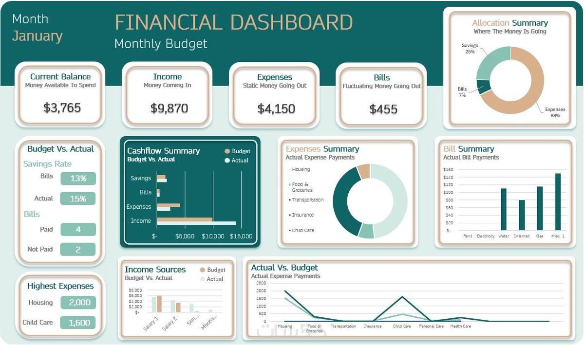 يتم عمل داشبورد من خلال ربط اكتر من شيت منفصل بجودة عالية