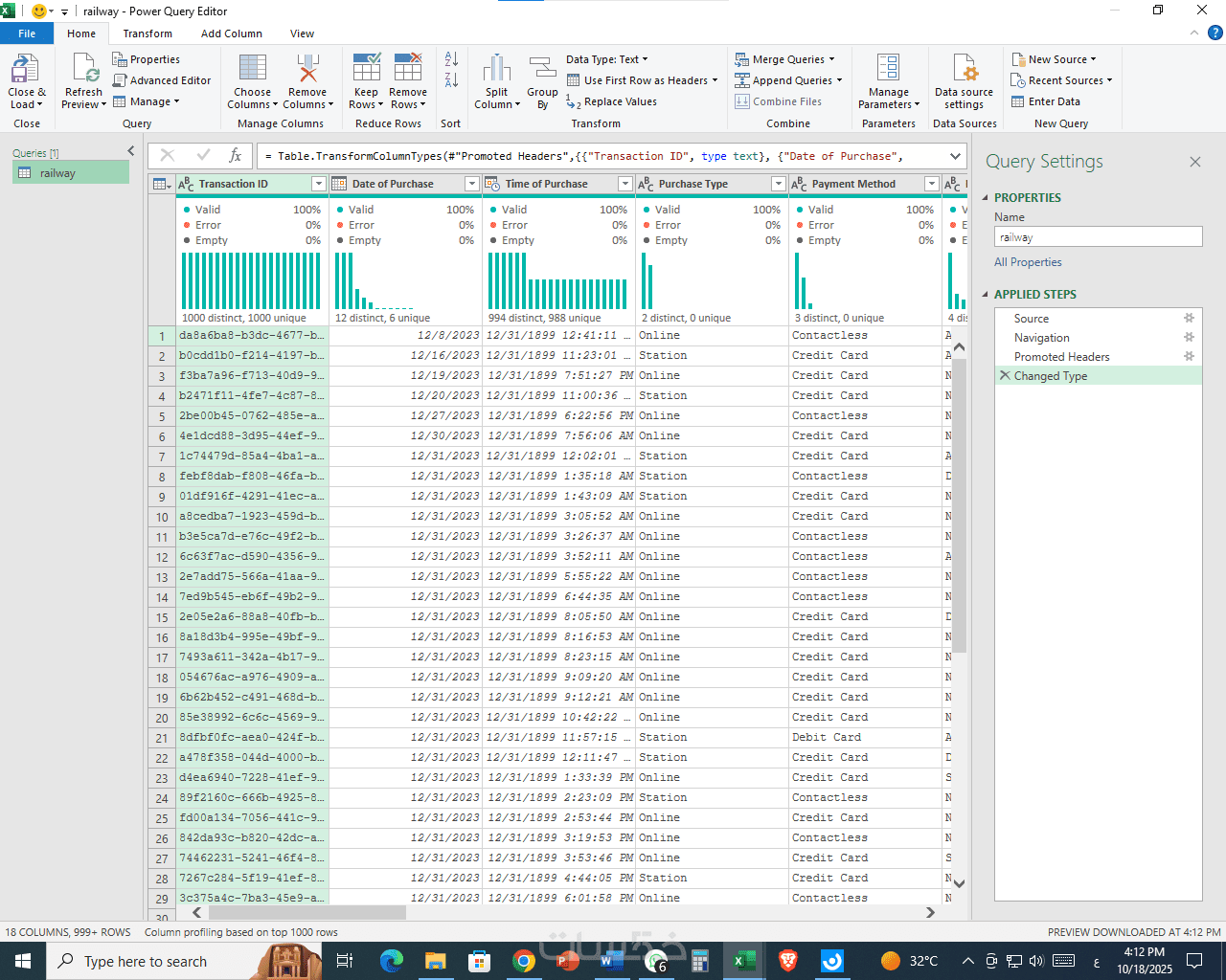 -عمل تحويلات زي (Unpivot – Merge – Split Columns) حسب شكل الداتا المطلوب.