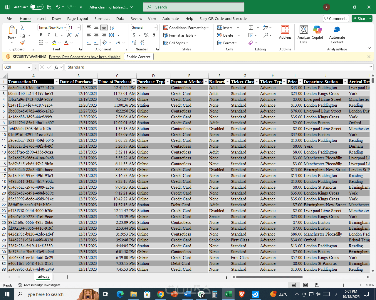 -تصحح أنواع الأعمدة (تاريخ، نص، رقم...).