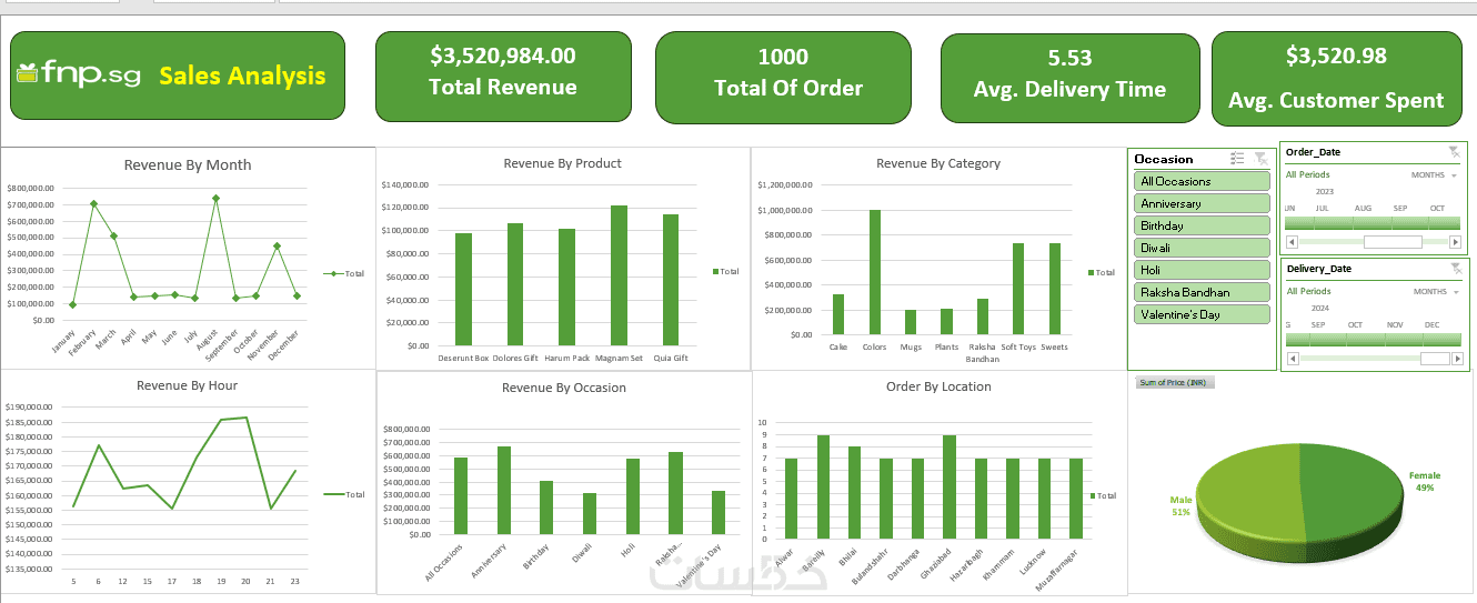 تقرير واحد بتصميم احترافي (Excel أو Power BI)، يحتوي على ملخص بصري (جداول ورسوم بيانية).