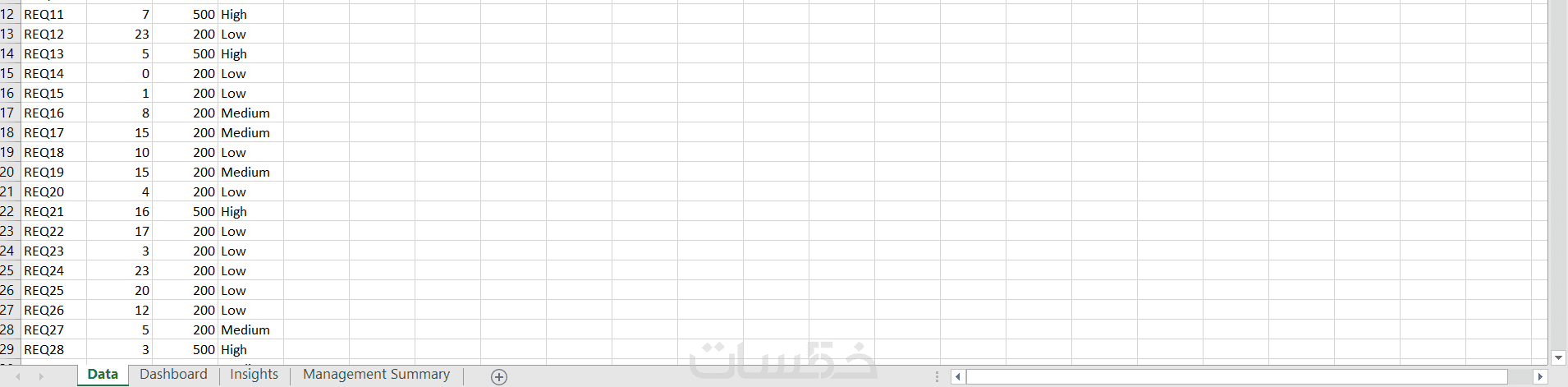 الخدمة تشمل تحليل ملف واحد يحتوي على بيانات حتى 1000 صف وبعدد أعمدة يصل إلى 15 عمود، مع تقديم تحليل وصفي بسيط يناسب البيانات الصغيرة والمتوسطة.