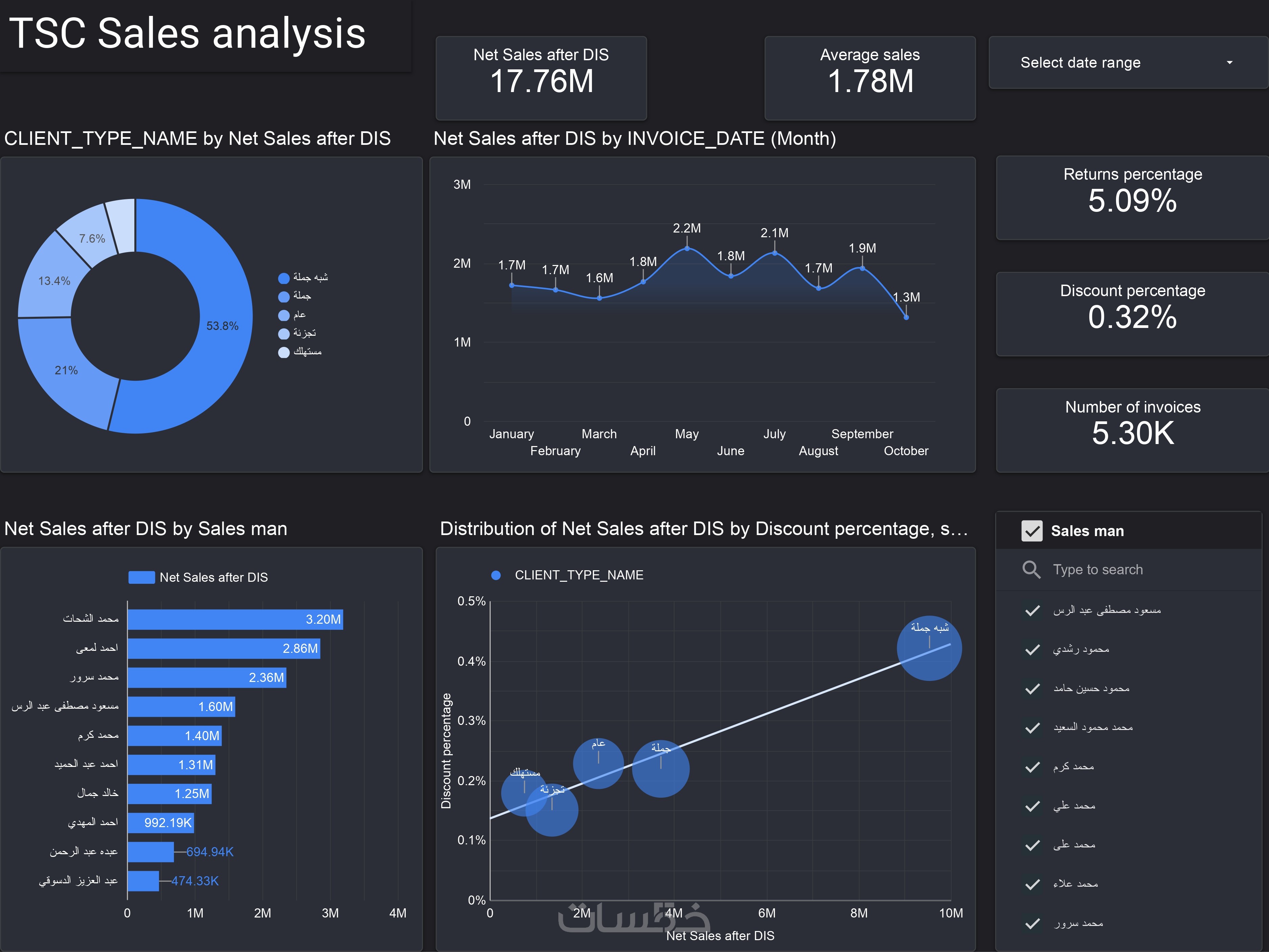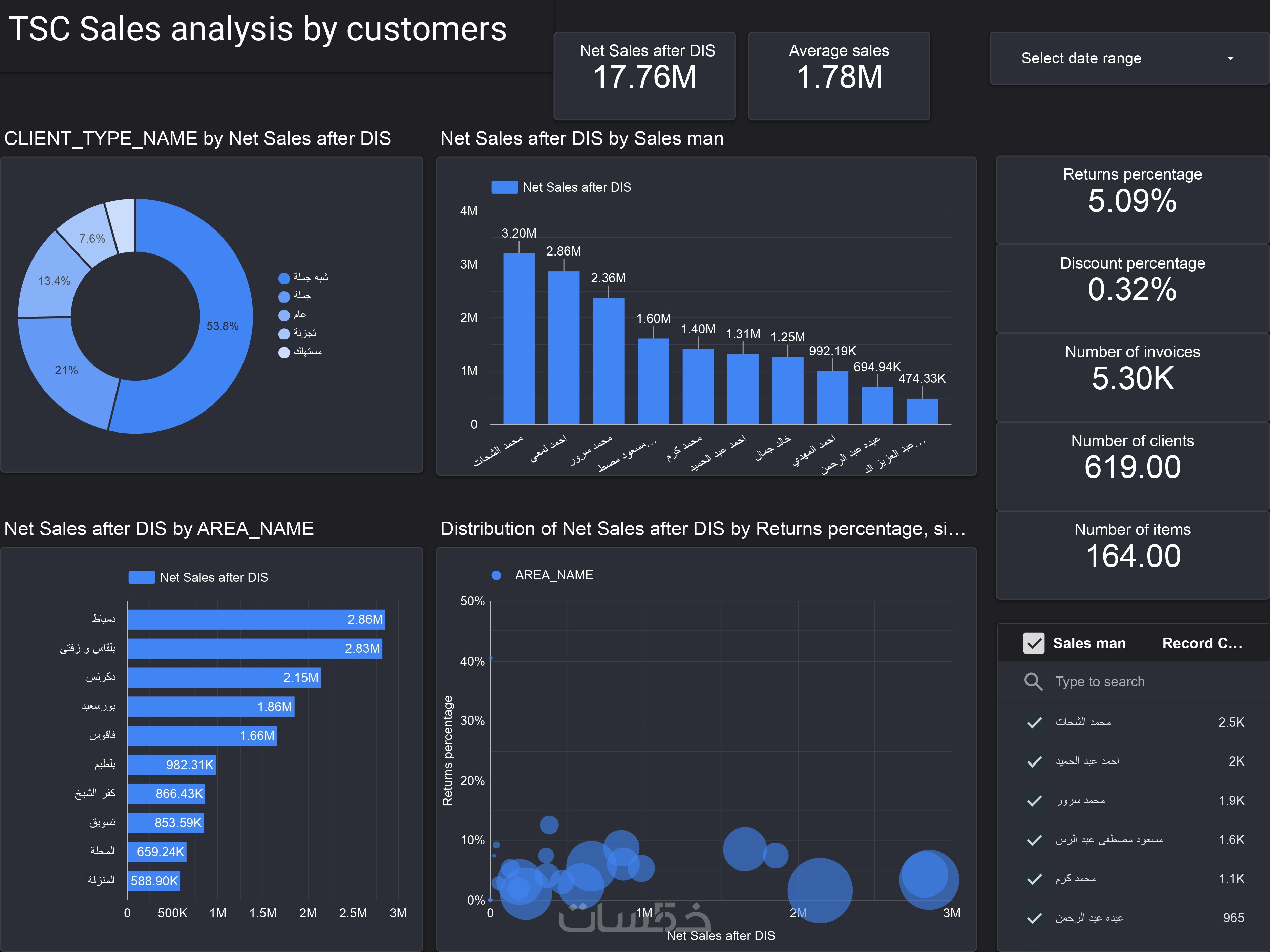سأقوم بتحليل بيانات المبيعات الخاصة بك وتصميم Dashboard تفاعلي احترافي يساعدك على متابعة الأداء بسهولة واتخاذ قرارات أفضل