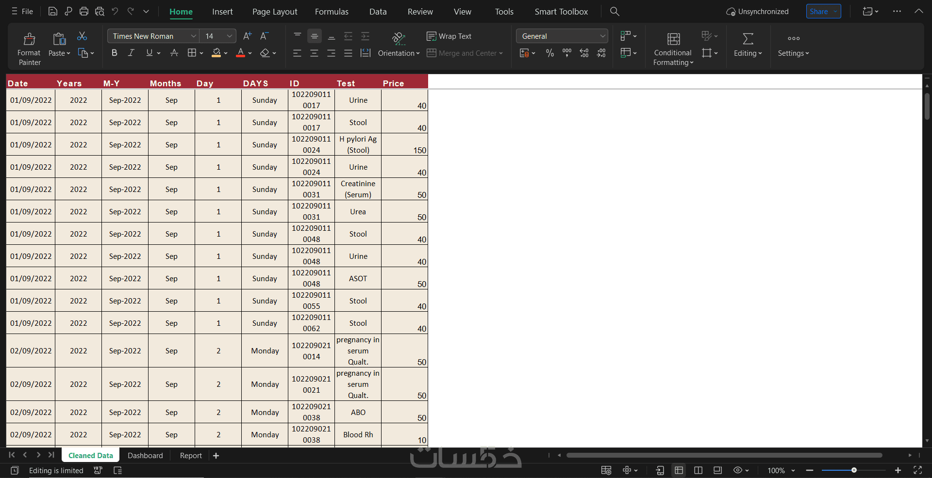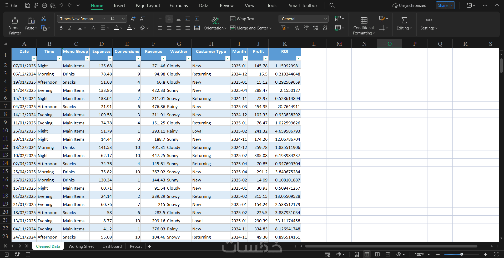 يحتوي علي جميع الداتا مرتبة ونظيفة