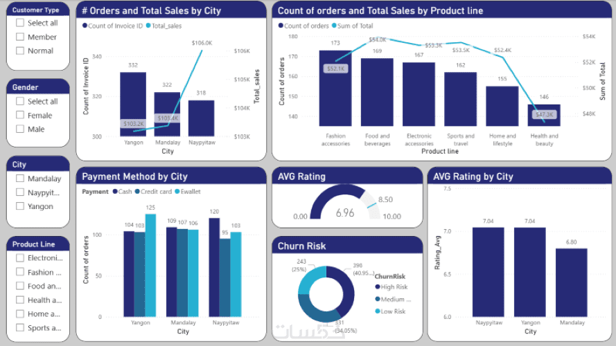 تقرير كامل يحتوي علي ثلاث صفحات تفاعلية و ملف بأهم النقاط و التوصيات لأتخاذ قرار.