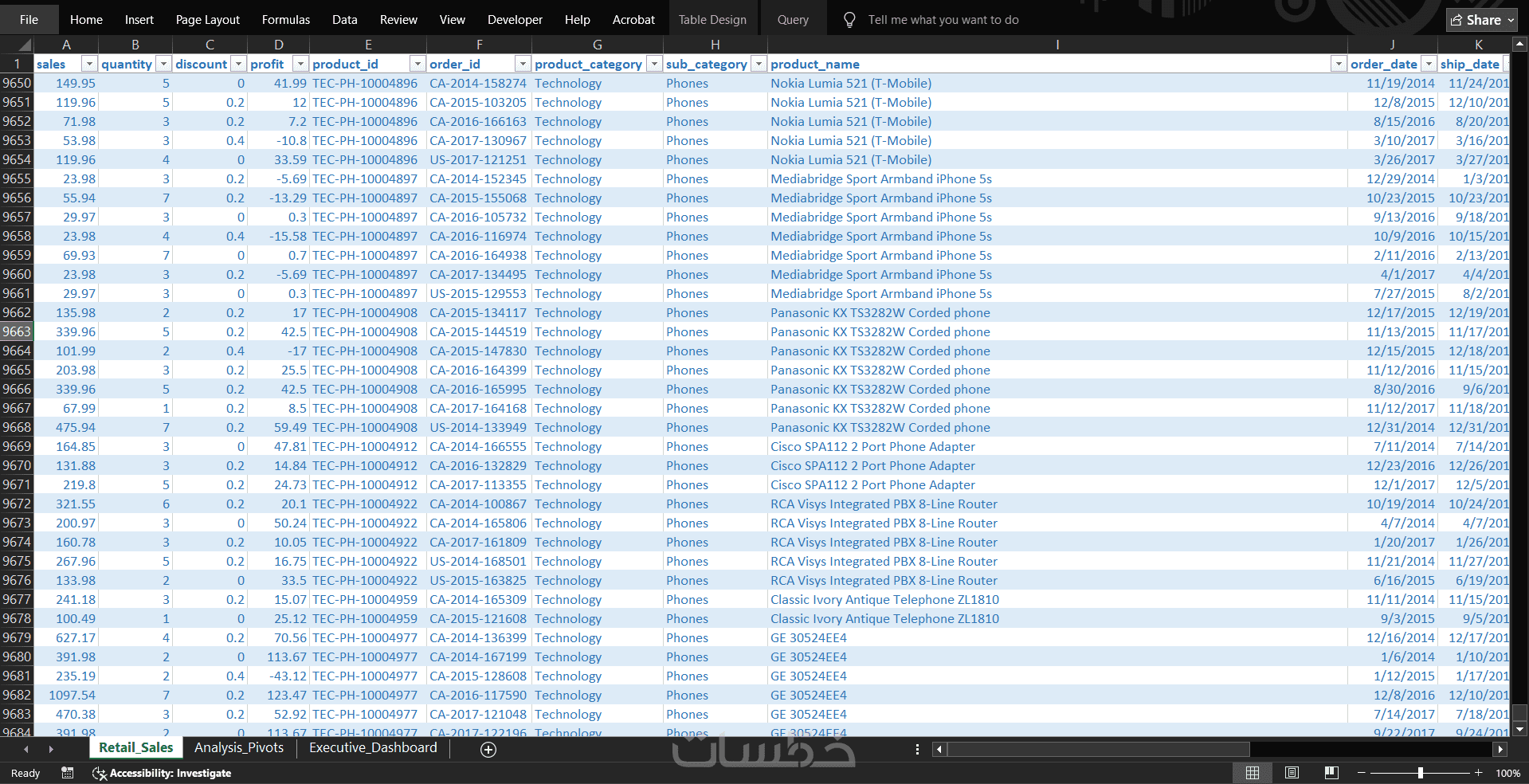 سأقوم بتحليل بيانات المبيعات الخاصة بك وإنشاء لوحة تحكم تفاعلية تساعدك على: