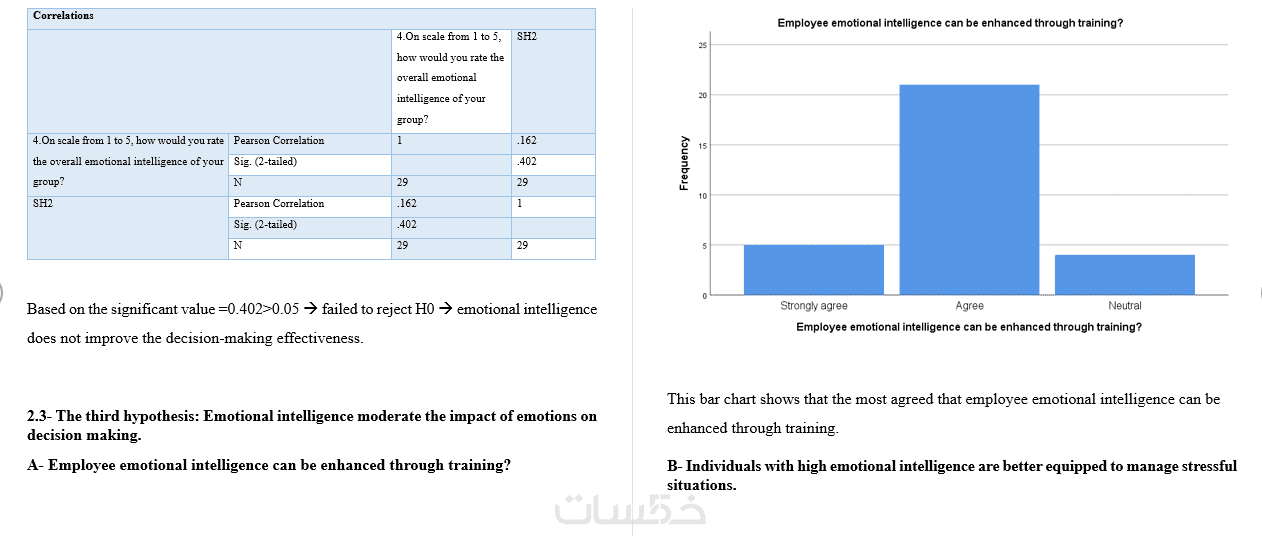 * إجراء الاختبارات الإحصائية المناسبة (مثل: الإحصاء الوصفي Descriptive Statistics، اختبار T-test، تحليل التباين ANOVA، معامل الارتباط correlation، ...).