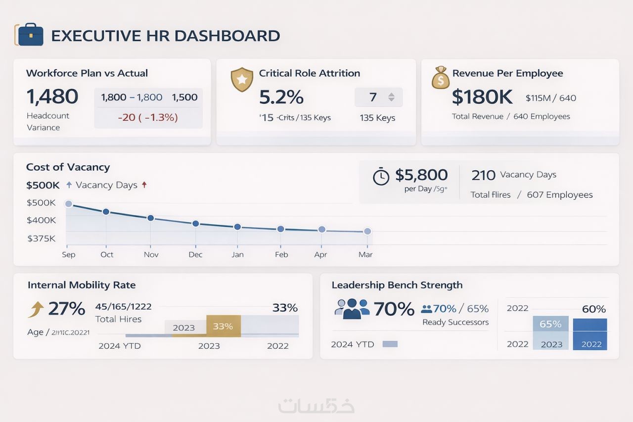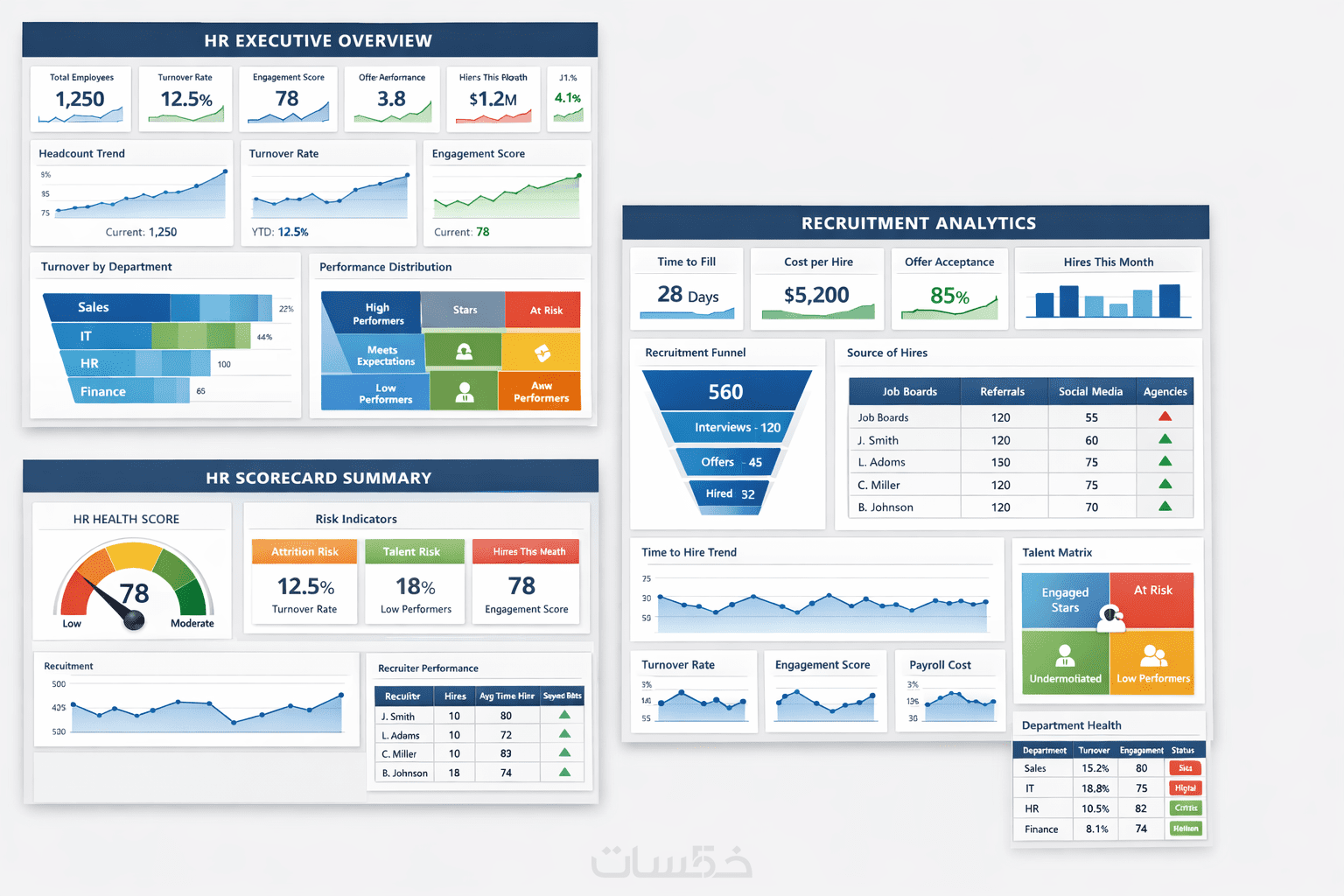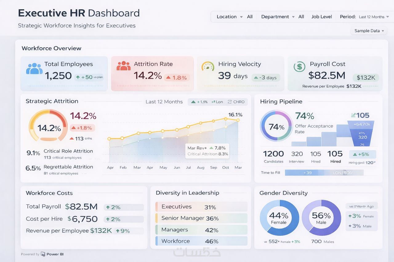 2- حتى 5 رسومات بيانية (Charts/Visuals) توضح أهم مؤشرات الأداء (KPIs).