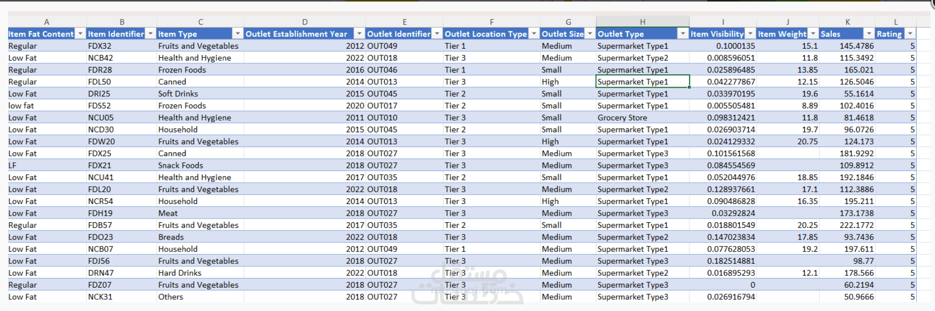 ملف البيانات المطلوب تحليله (Excel / CSV / Google Sheets)
