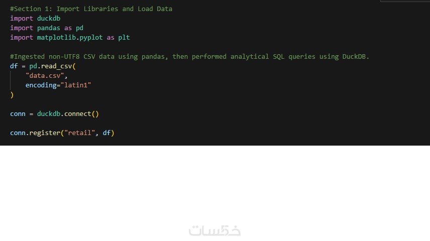 أعتمد في عملي على أقوى المكتبات البرمجية مثل Pandas للمعالجة، و Matplotlib/Seaborn للتصور البياني، مع كتابة استعلامات SQL معقدة ومنظمة.