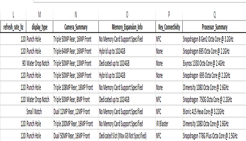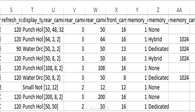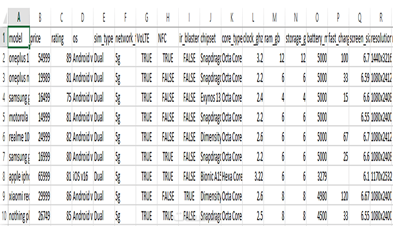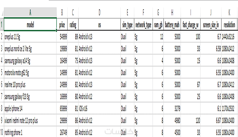 ملف البيانات بعد التنظيف والتنظيم (Excel/Google Sheets).