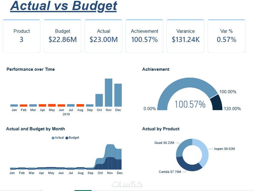 - إنشاء 5 رسوم بيانية مع أبرز مؤشرات الأداء في صفحة داشبورد واحدة.