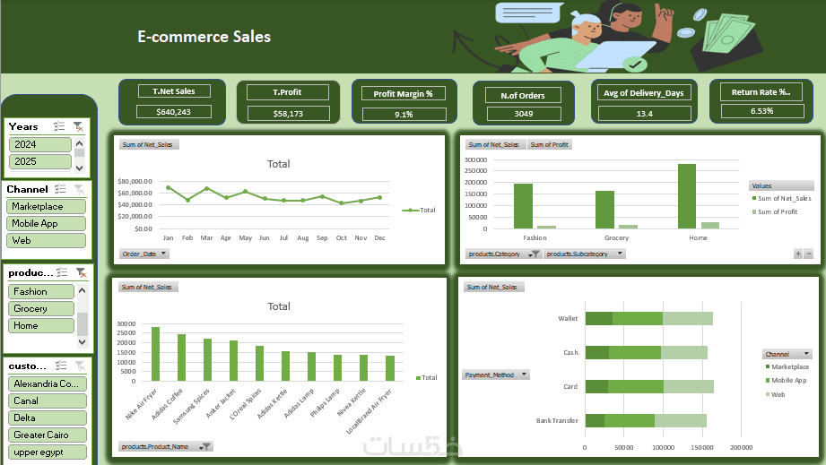 -دقة واحترافية عالية: الاعتماد على الدوال المتقدمة وPivot Tables يضمن نتائج تحليل دقيقة وخالية من الأخطاء اليدوية.