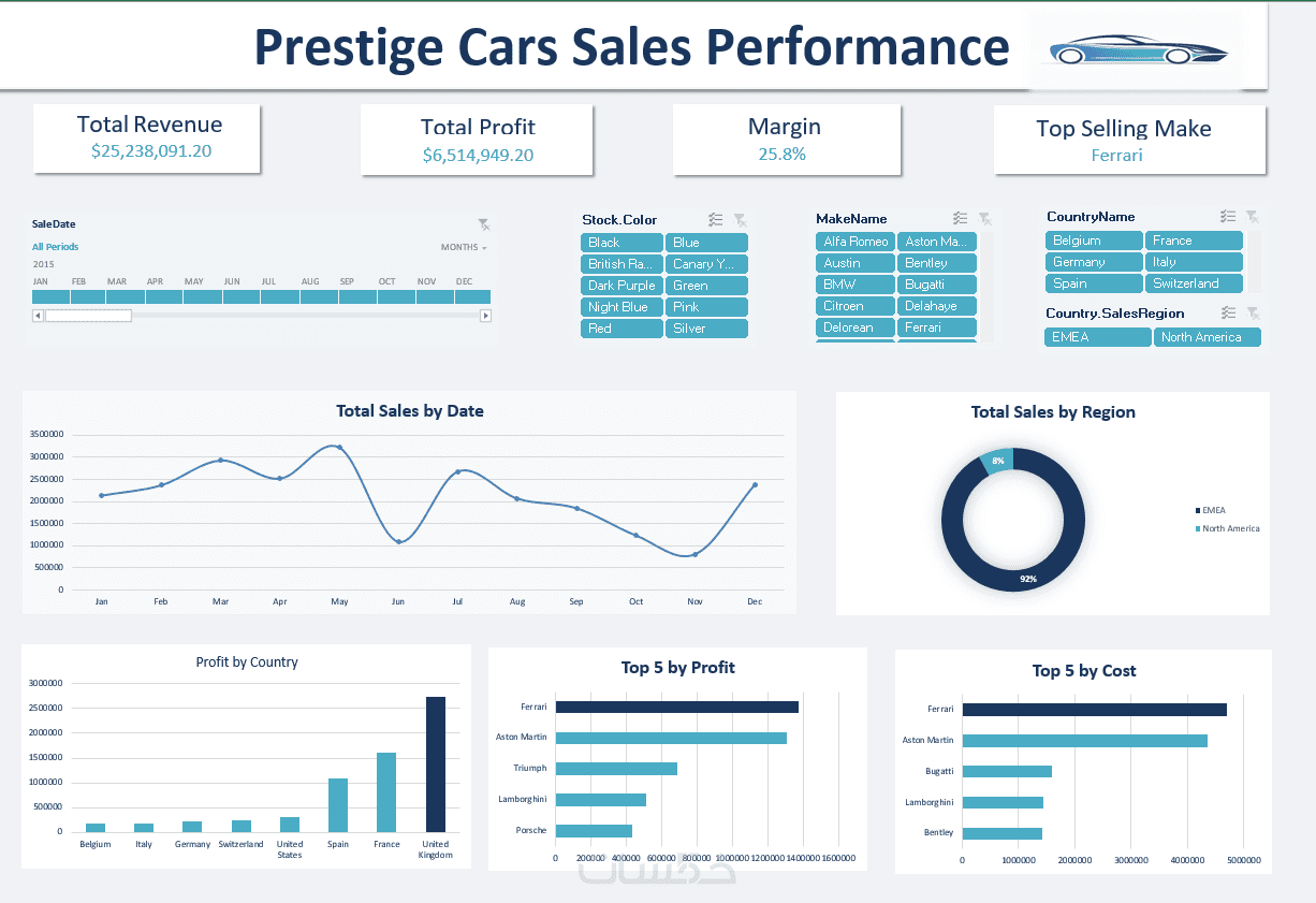 نماذج من أعمالي في تحليل البيانات وتصميم Dashboards باستخدام Excel لعرض المبيعات والأرباح والمؤشرات الرئيسية بطريقة احترافية وسهلة الفهم.