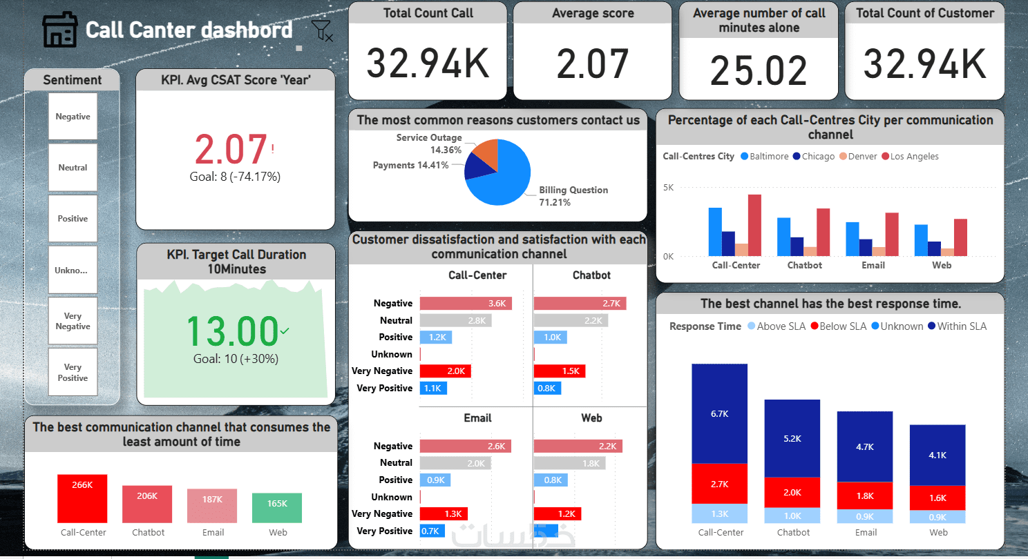 لوحة تحكم تفاعلية (Dashboard): التقرير سيحتوي على ما بين 4 إلى 5 مرئيات (Charts & Visuals) مرتبطة ببعضها وتتفاعل مع الفلاتر.