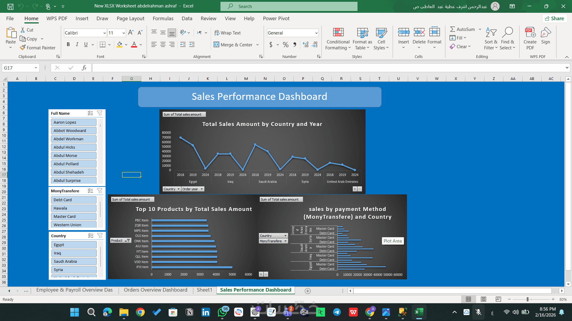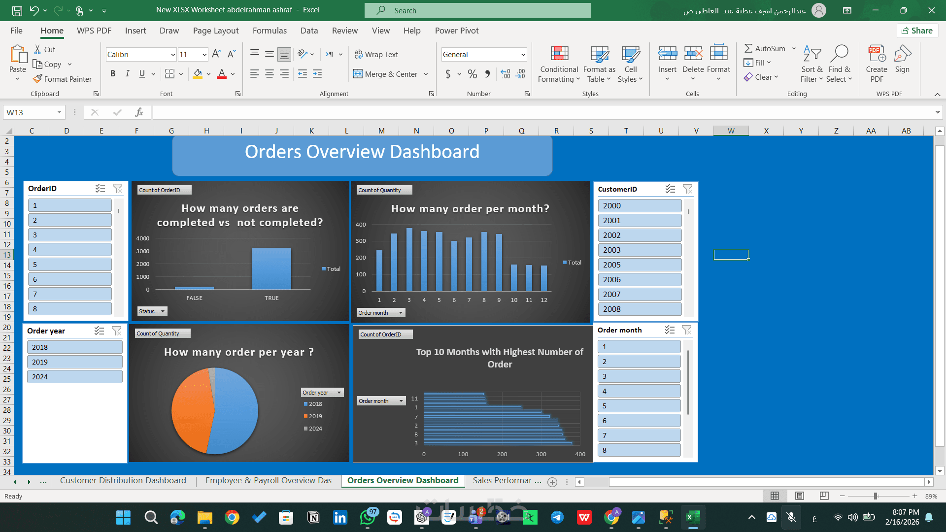 أقدم لك خدمة احترافية لتحويل بيانات شركتك الخام إلى لوحة تحكم (Dashboard) تفاعلية على برنامج Excel، تمنحك رؤية شاملة ودقيقة لاتخاذ قرارات إدارية مبنية على الحقائق.
