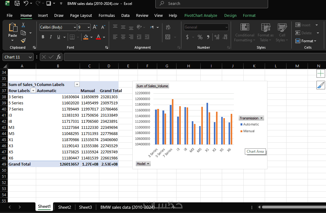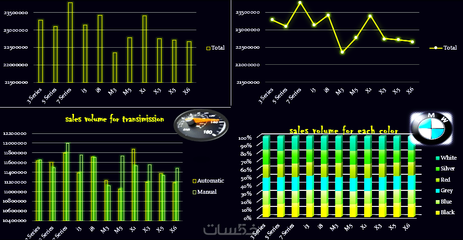 تحليل شامل لمبيعات سيارات BMW حسب الفئات والطرازات المختلفة.