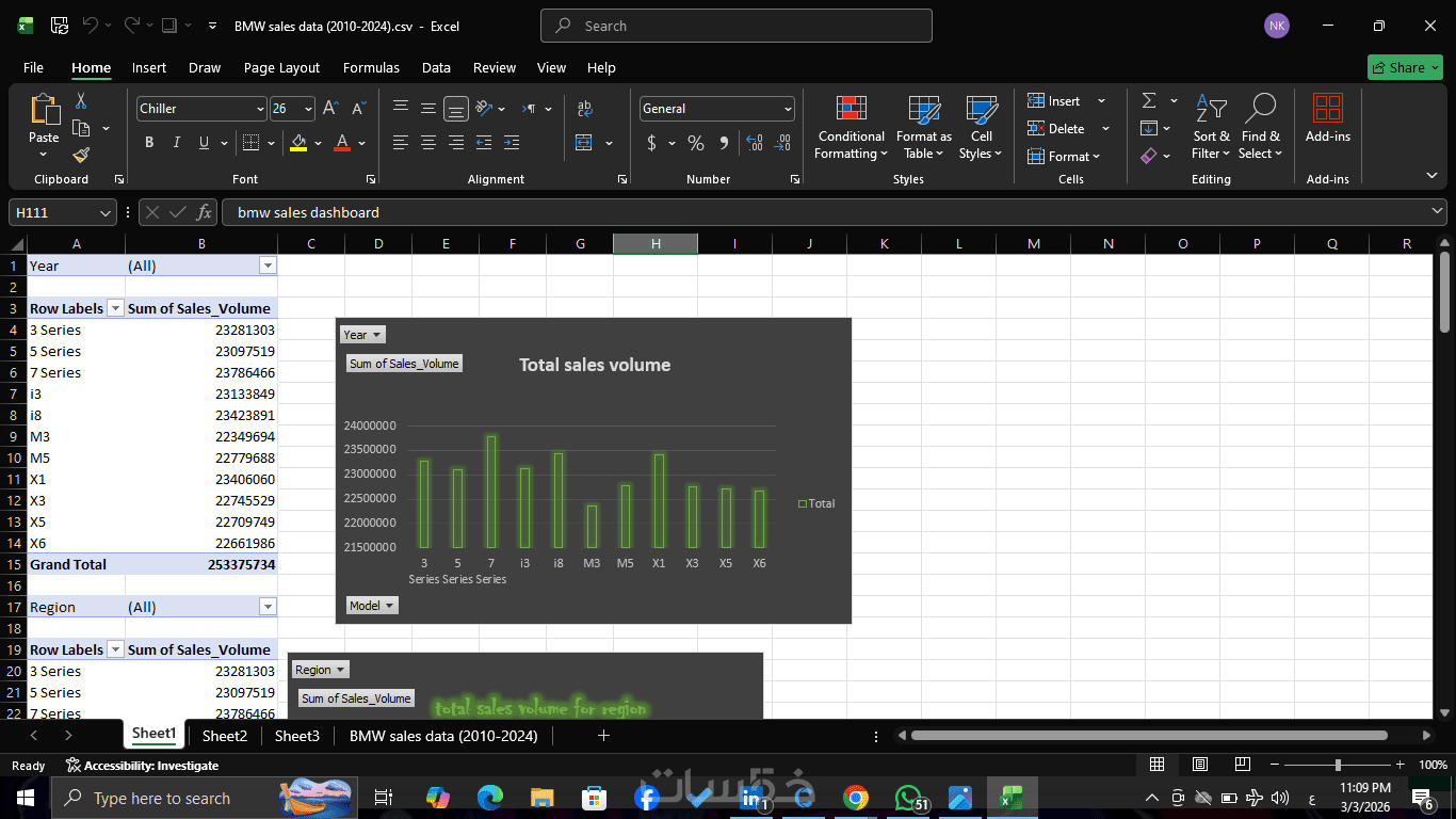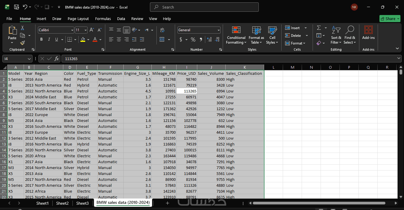 إذا كنت تعمل في مجال بيع السيارات أو تحليل الأسواق وتحتاج إلى فهم عميق لأداء المبيعات، فأنا أقدم لك لوحة بيانات احترافية (Dashboard) مصممة خصيصًا لتحليل أداء مبيعات سيارات BMW بمختلف فئاتها مثل: 3 Series، 5 Series، 7 Series، X، M، i.