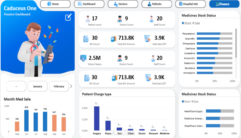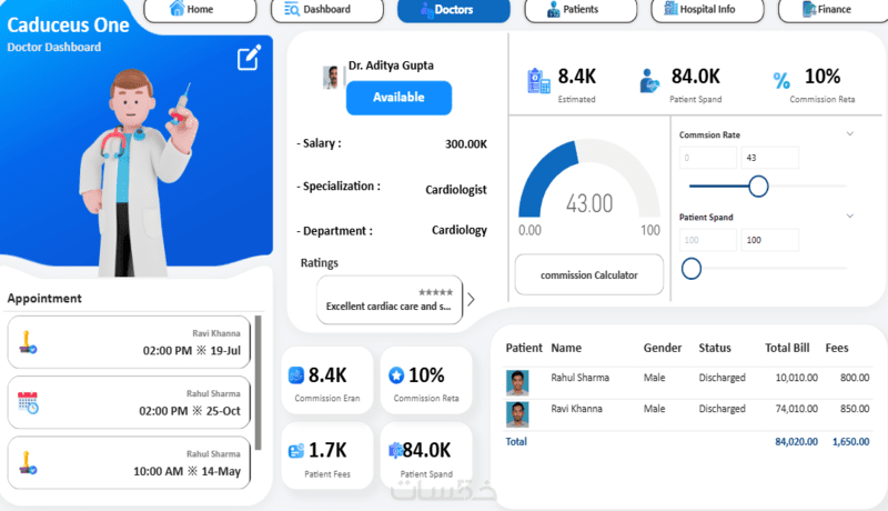 تصميم صفحتي تحتوي على 8 رسومات بيانية و 4 مؤشرات أداء (KPIs).