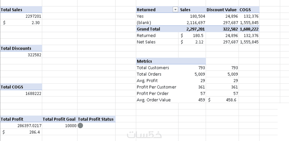 Pivot tables لتلخيص البيانات المهمة والإجابة على أسئلة البزنيس المهمة.