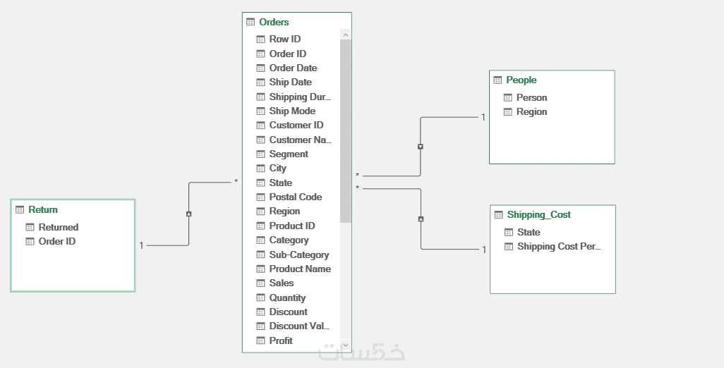 نمذجة البيانات (Data Modeling): بناء علاقات منطقية بين الجداول المختلفة (Star Schema) لربط المبيعات، المخزون، والعملاء في نظام واحد.