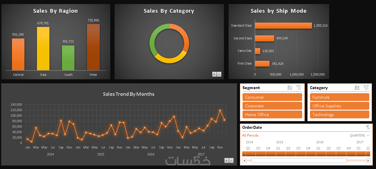 Dashboard احترافية تحتوي على 5 رسوم بيانية.