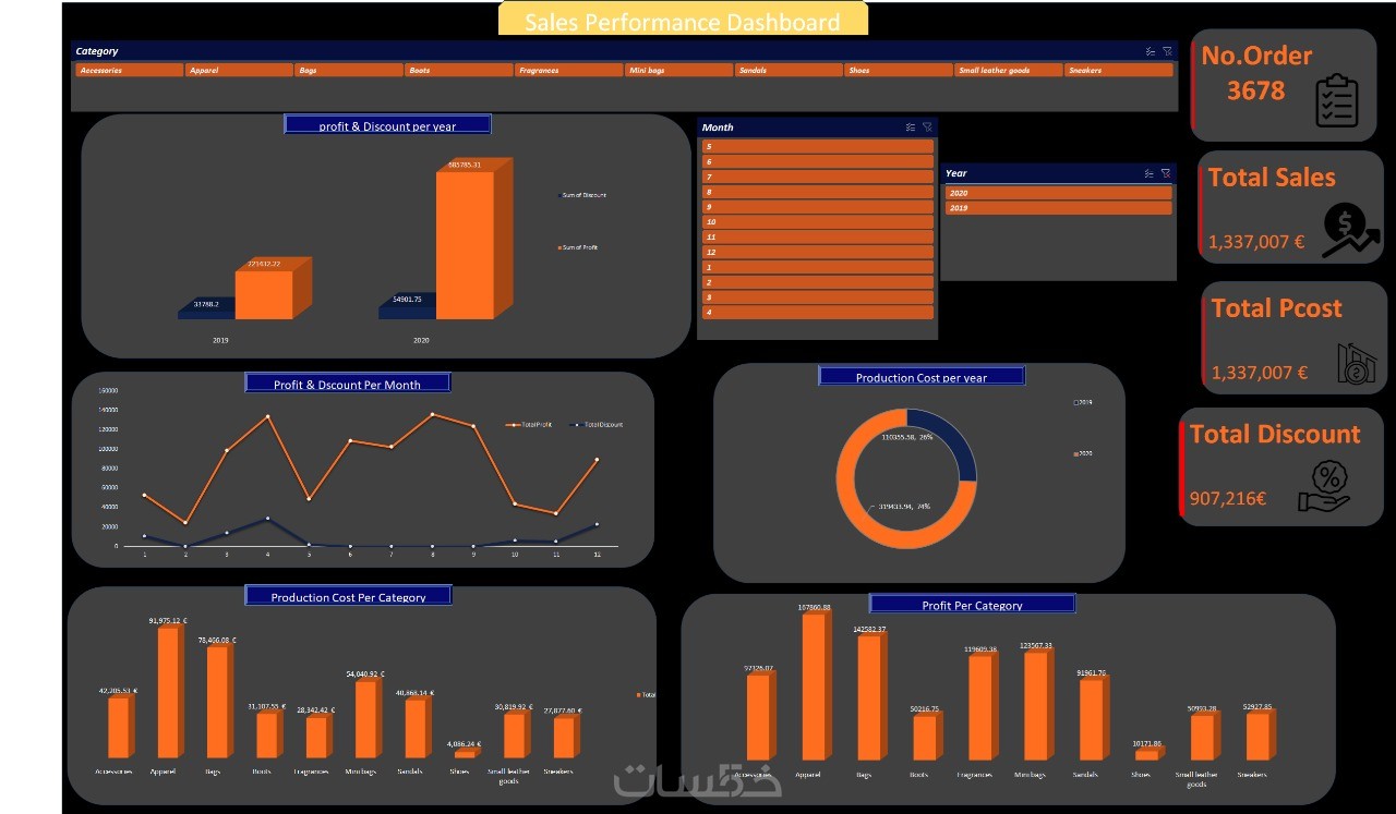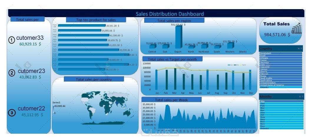 داشبور تحتوي على صفحتين و على 10تشارتات