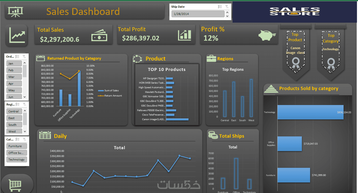 سأقوم باستخراج أهم الأرقام التي تهم عملك مثل (إجمالي المبيعات، صافي الربح، نسبة النمو، وتحديد أفضل 10 منتجات) وعرضها بوضوح في مقدمة اللوحة.