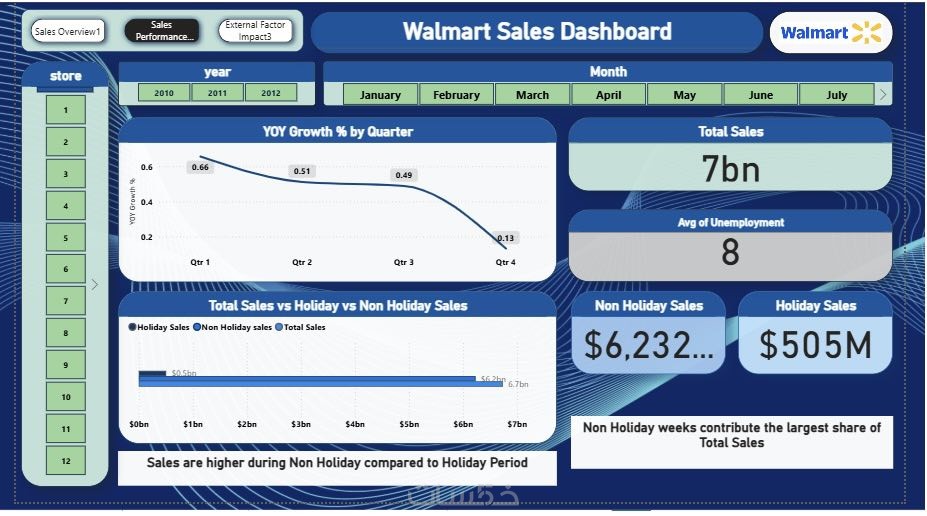 تحليل المؤشرات الرئيسية (KPIs): عرض إجمالي المبيعات، المتوسطات، ونسب النمو بشكل بارز.