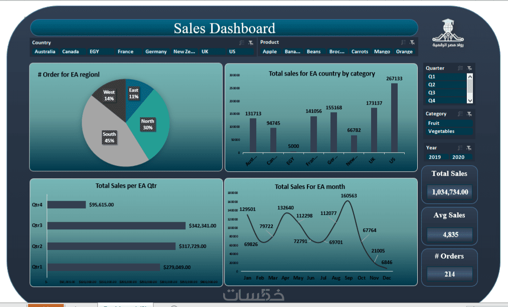 تصميم لوحات تحكم تفاعلية (Interactive Dashboards) احترافية وجذابة باستخدام (Power BI, Tableau, Excel).